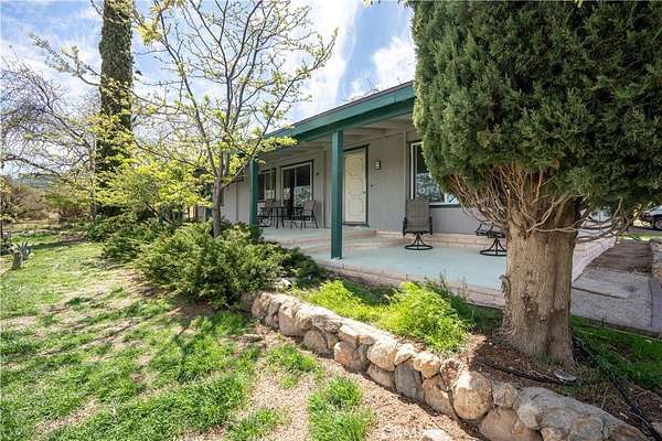 The spacious layout includes a cozy fire stove--currently aesthetic only, but functional if you choose to reconnect it. A bonus room brings extra light and flexibility for a home office or guest space. Comfort is key here, with mini splits providing efficient heating and cooling throughout. Enjoy peace of mind with a brand new roof, all new windows in the front and main living areas, and newer doors throughout. Both bathrooms feature new toilets, and a dedicated laundry room adds convenience. The home features all new insulation and a moisture barrier under the house, with completely redone wiring underneath--no loose dirt here! Outside, enjoy a brand new hot tub, custom rock work that surrounds the property, with beautiful, carefully thought out trees. The land is ready for your dreams--whether it's gardening, animals, or just enjoying the wide open space. A solar pump provides water from the well at a solid 5-6 gallons per minute. All plants are on timers for easy maintenance. And yes, one storage container, a tractor and ride-on mower are included!