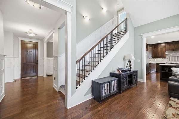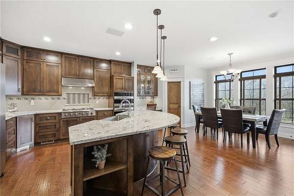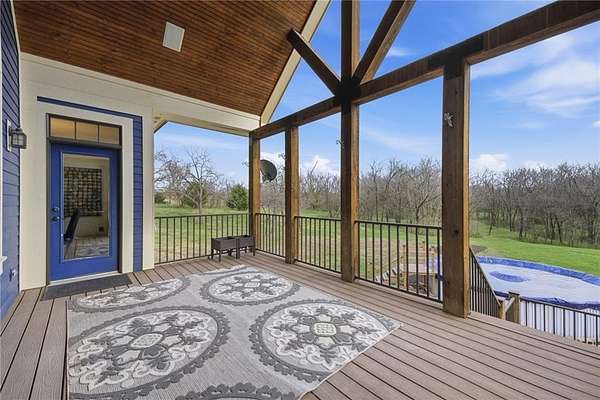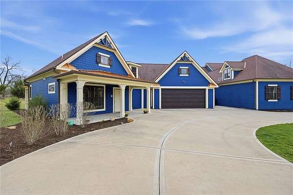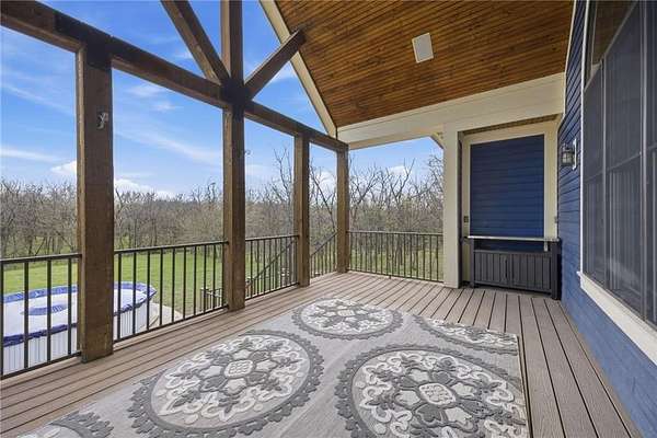 Tucked away on nearly 6 wooded acres (5.62+/-), this custom modern Craftsman estate offers a rare blend of privacy, craftsmanship, & luxury living just minutes from Johnson County in Northern Miami County. A tree-lined drive winds through mature timber to the circular drive & welcoming covered front porch. Inside, stunning honed HDWD floors flow through the main living areas. The foyer opens to a dining RM & a spectacular great RM featuring a vaulted ceiling, stone FP flanked by built-ins, & a dramatic floor-to-ceiling arched window framing sweeping forest views. The great RM adjoins the custom kitchen & BKFST area w/walkout access to a covered deck. The kitchen is designed for serious cooking w/granite counters, a large island, SS appliances including an Electrolux refrigerator/freezer, built-in oven, convection micro, 6-burner gas cooktop w/commercial hood, lazy-Susan corner cabinets, central vacuum w/convenient crumb drawer, & abundant storage. The main-LVL owner's suite features honed HDWD floors & a spa-inspired bath w/glass shower, claw-foot soaking tub, & walk-in closet. A private office w/a built-in desk & cabinetry, full bath, & laundry RM w/sink complete the main LVL. Upstairs offers 2 expansive BRs w/walk-in closets & a full bath. The semi-finished walkout LL includes stained epoxy flooring, family & rec RMs opening to the patio & pool, plus a 4th BR/exercise RM & full bath. A breezeway connects the home to a private guest cottage w/bamboo flooring, full kitchen w/pantry, living area, BR, bath, laundry, its own garage, & patio overlooking the forest. Additional highlights include zoned HVAC, stand-by whole house generator, security system, water softener & purifier, Z-Wave ready for home automation (you provide computer), indoor/outdoor surround sound -- 6 Polk speakers in kitchen, breakfast, deck & patio, cell booster, & an enclosed goat yard w/outbuildings. Secluded acreage, scenic views, & refined finishes create a truly exceptional retreat.