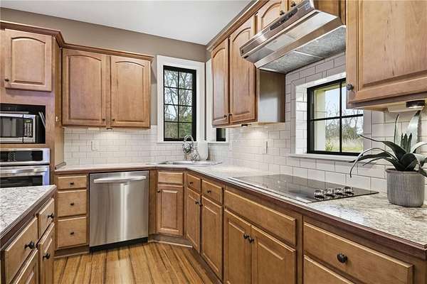 - Built-In Oven, Dishwasher, Disposal, Down Draft, Exhaust Fan, Humidifier, Microwave, Refrigerator, Stainless Steel Appliance(s), Water Purifier, Water Softener