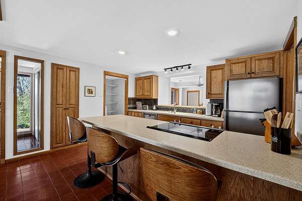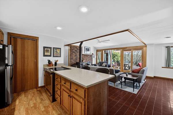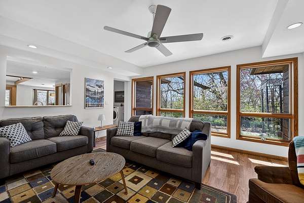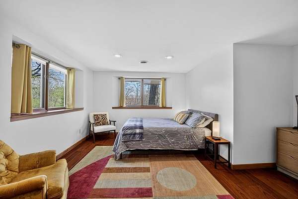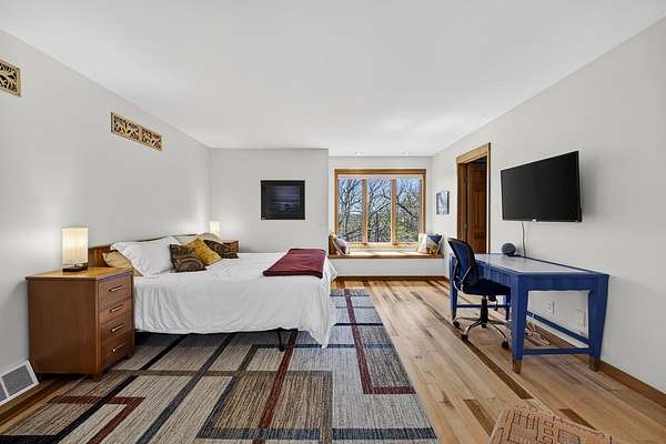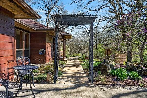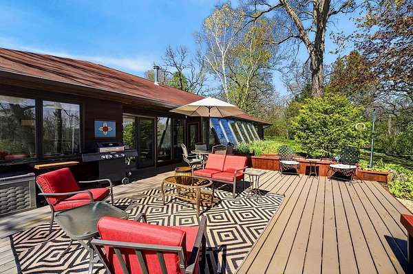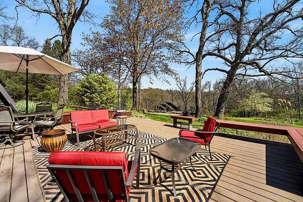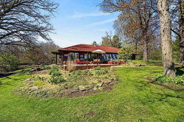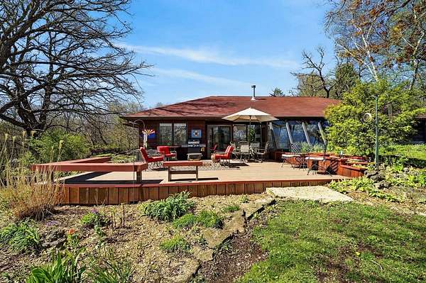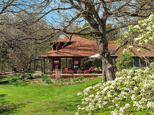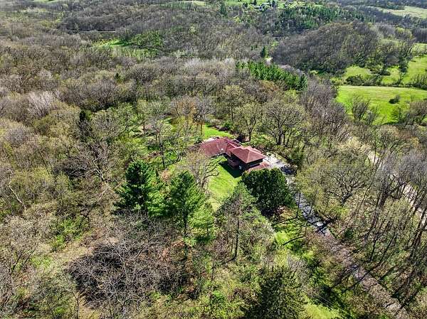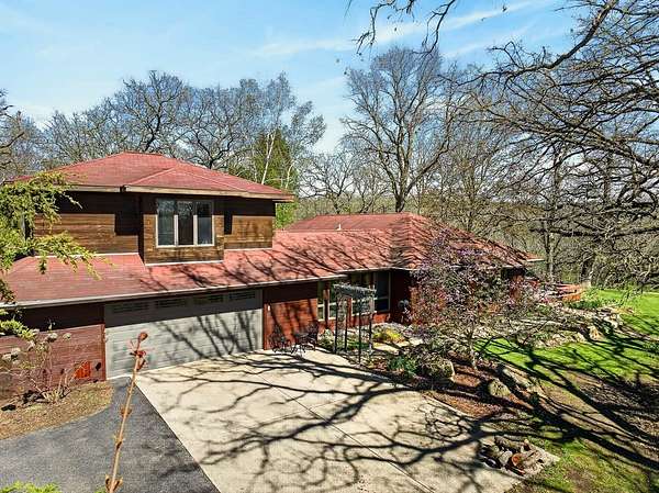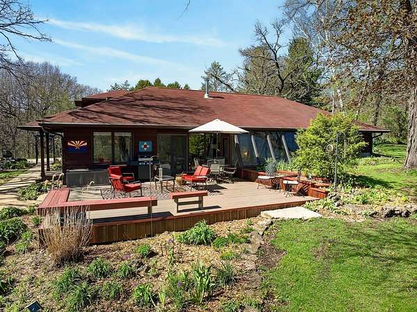 Show 4/30. Wake to the sound of bird song. This home nestled in the heart of Southwest Wisconsin’s Driftless area evokes all that nature has to offer; a babbling brook, forested trails to wander and coveted prairie style architecture which blends into the landscape and offers a quiet retreat to leave your stress and worries behind. Enjoy the changing seasons with minimal money spent on energy with the recent addition of a Ground Source Geo Thermo heating and cooling system plus solar panels. Crackling fires can be enjoyed both indoors in the Morso wood stove and outdoors enjoy firepit nights with big sky. Your choice of either a main floor or second floor ensuite, both with outdoor spaces a solarium & private deck. A small green house allows for year round gardening and 2 1/2 car garage with large shop area. All in a perfect location, close to American Players theater, Unesco’s World Heritage Site; Taliesin, and the charming towns of Spring Green, Mineral Point & others.