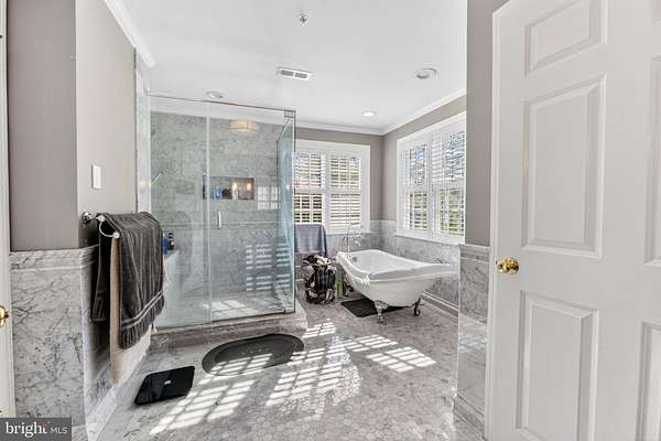 - Breakfast Area, Built-Ins, Butlers Pantry, Carpet, Ceiling Fan(s), Chair Railings, Crown Moldings, Double/Dual Staircase, Eat-In Kitchen, Family Room Off Kitchen, Formal/Separate Dining Room, Gourmet Kitchen, Island Kitchen, Pantry, Primary Bath(s), Recessed Lighting, Soaking Tub Bathroom, Stall Shower Bathroom, Tub Shower Bathroom, Upgraded Countertops, Walk-In Closet(s), Water Treat System, Wet/Dry Bar, Wood Floors