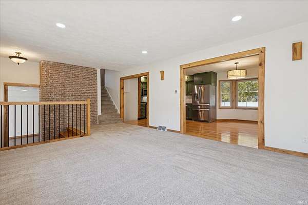 Looking for a home with some space to breathe? This inviting 3-bedroom, 2-bath home sits on just over 3 acres in Middlebury School District. Step inside to beautiful custom woodwork, complemented by updated flooring, lighting, and fixtures that blend classic craftsmanship with modern style. The spacious living room offers the perfect setting for gathering with family and friends, while the kitchen and dining area overlook the peaceful backyard, ideal for morning coffee or evening sunsets. The cozy family room features a built-in window seat, custom bookshelves, and a warm fireplace to enjoy on cool evenings. Upstairs, you'll find three comfortable bedrooms and two full baths, including a private primary suite with its own bath. Outside, you'll love the privacy and open space that comes with over three acres of land. A large outbuilding provides ample room for storage, hobbies, or a workshop, complete with a concrete floor and workbench.