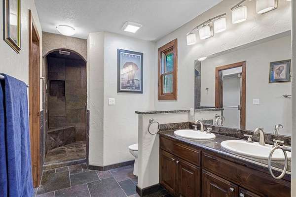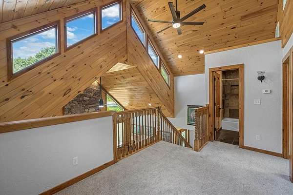 Discover the perfect blend of entertaining, functionality, & rustic charm with this exquisite retreat situated on 2 +- acres. The property is thoughtfully designed to accommodate an endless array of possibilities. The inviting design highlights a spacious living area with soaring wooden vaulted ceilings and a striking stone WBFP as the centerpiece. The open kitchen and dining concept is a chefs dream - perfect for gatherings, complete with a commercial-grade gas range, double oven, breakfast bar, and an abundance of cabinetry for storage. The primary suite is conveniently located downstairs that leads into the ensuite with dual sinks, walk-in closet, & beautifully tiled shower featuring multiple shower-heads and body jets providing a spa-like experience. Upstairs offers 2 additional bedrooms, a full bathroom, and a versatile bonus area filled with natural light. Step outside and enjoy the oversized back patio connecting to the separate 12x30 guest house ideal for extended stays, mother-in-law suite, or rental income. This property is built for both storage and productivity, featuring a 2-car garage and two spacious insulated shops--measuring 40x60 and 34x30. One shop is outfitted with a professional-grade automobile lift, making it ideal for mechanics, car enthusiasts, or hobbyists. A wide concrete driveway ensures easy access and provides ample parking for guests, equipment, or additional vehicles. A whole-house generator, powered by its own dedicated propane tank, provides peace of mind and reliability. Designed to operate the entire 1,928 sq ft home as well as the guest house and all additional buildings on the property, this system ensures uninterrupted comfort and functionality no matter the conditions. This home isn't just a residence--it's a lifestyle. Whether you're relaxing fireside, enjoying the loft's scenic views, or tackling projects in the shop, this property provides the perfect balance and rare combination for comfort and utility!