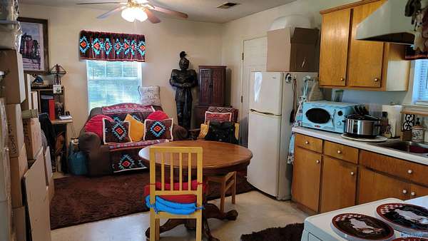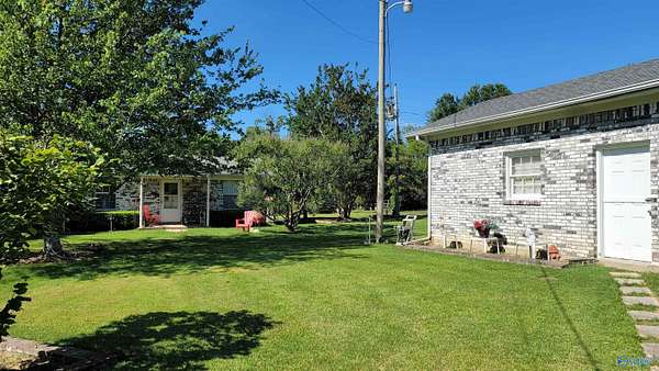 Enjoy a beautiful country setting on this 4.5 acre property that offers a wonderful 4 Bedroom, 2.5 bath brick home, eat-in kitchen, mud/laundry Rm, dining/sitting Rm, Living Rm w/wood burning fireplace & built-in bookcases; covered front & back porch &walk down storm shelter under attached garage (new roof 2022). Also, offers a 15x30 Detached 1 Br, 1 bath brick Guest House/Mother-in-law home w/covered front porch, (new HVAC 2023), 21x16 detached brick workshop w/electricity, outside water faucet& garage door for additional vehicle storage (new roof 2022), & 18x12 brick Storage/Gardening building w/electricity & outside water faucet. Property SOLD 'AS-IS".