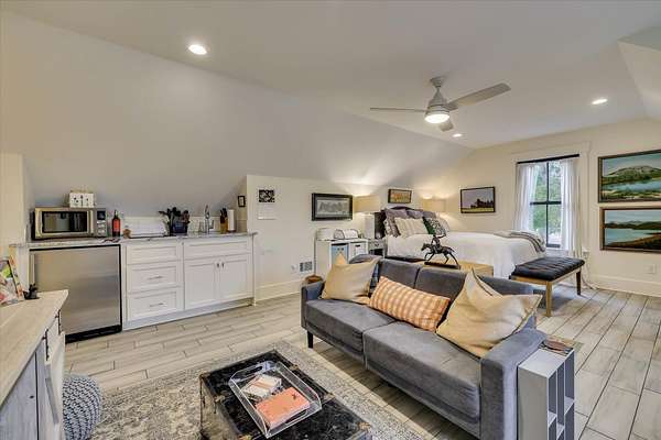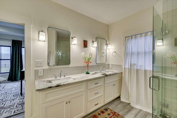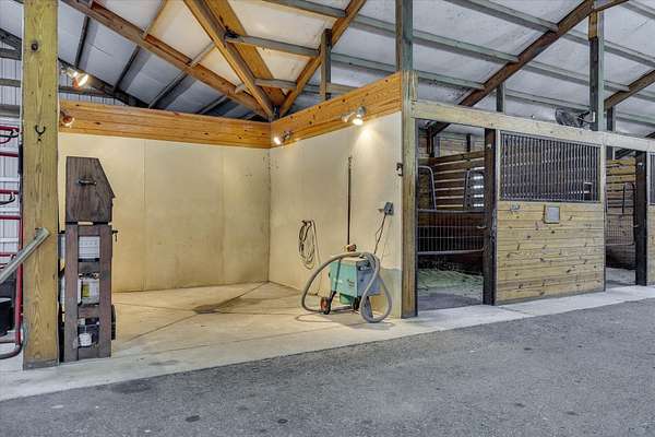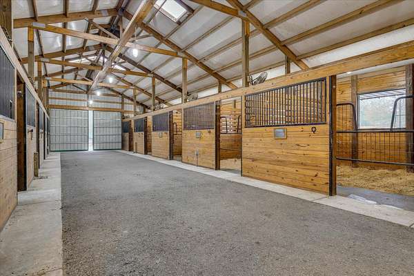 Drive through the gates of New Bridge Polo and arrive at Dollamor Farm where comfort, beauty, and function come together seamlessly. From your back porch, enjoy sweeping views of New Bridge's Polo Field 3 and your 18-Stall Barn while savoring a glass of wine as your dogs play in the fenced yard. Inside the home, two sets of sliding glass doors open to a bright, inviting layout perfect for entertaining. The vaulted-ceiling living room features a wet bar, creating a warm and social atmosphere. The primary suite feels like a private spa, with a stunning oversized shower, indulgent soaking tub, and a spacious custom walk-in closet. A guest suite, half bath, and generous laundry room offer practicality and privacy, while the studio apartment above the garage-with its own entrance, full bath, and walk-in closet-provides ideal accommodations for guests or renters. For equestrians, the private barn is truly extraordinary. The center-aisle barn includes 18 stalls, an indoor wash rack, outdoor wash area, two lounges, a full kitchen, full bathroom, laundry room, and a tack room. Eight pastures of varying sizes and a natural-footing ring offer an optimal environment for training, turnout, and professional-level care. All of this is located within the coveted New Bridge Polo community, known for its five polo fields, clubhouse, seasonal restaurant, pool, clay tennis court, exercise track, and world-class boarding facility with GGT-footing dressage and jump arenas. Here, you're not just purchasing a property-you're embracing a lifestyle built around elegance, community, and the best of equestrian living.