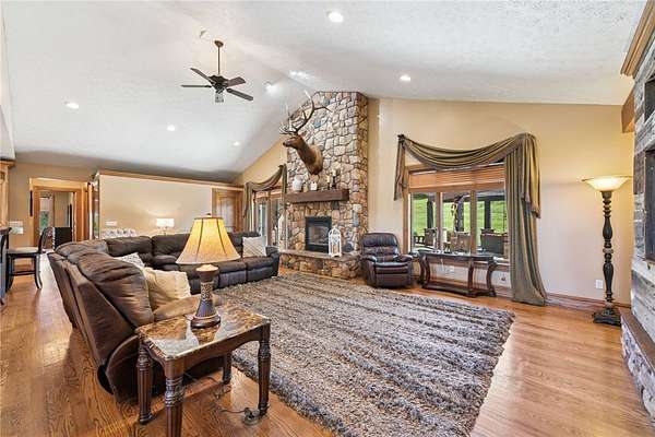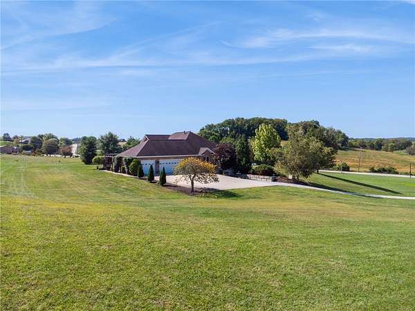 Welcome to 577 Boxard Luxor Rd, a beautiful brick ranch on 10 picturesque acres. This home combines quality craftsmanship w/ comfort, convenience, & space to entertain. Step inside through the large entryway & you'll see the vaulted ceilings, custom woodwork, & open, airy floor plan. The living room offers a striking fireplace & seamless flow into the dining room & kitchen, perfect for everyday living or hosting. On one side of the home, the primary suite awaits with a spa-like bathroom & walk-in closet. On the opposite side, you'll find 2 bedrooms along w/ a full bath & half bath. The lower level is finished, complete w/ radiant heat, large family room, theater entertainment system, 4th bedroom, & a full bath--ideal for guests or entertaining. Outside enjoy a covered front porch and a partially covered back patio w/ outdoor fireplace. The 3-car garage provides plenty of parking, while the 10-acre lot offers privacy and space to roam, all while being just minutes from local amenities.