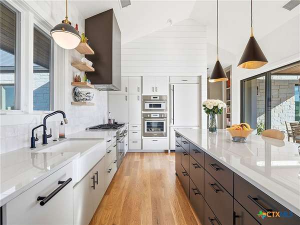 Designed by renowned architect Tim Brown, this exceptional residence blends timeless elegance with purposeful design.? Every square foot has been masterfully used to create a home that lives both luxuriously and efficiently - where designer finishes, custom cabinetry, French-country wood floors, and Thermador appliances elevate everyday living.? Nestled on 6.82 private acres, the home sits atop a scenic ridge with tranquil views of the neighboring pond and the rolling Texas Hill Country landscape.? Morning coffee tastes better here, sunsets linger longer, and the stars feel close enough to touch.? Life in The Preserve at Walnut Springs is equally extraordinary.? Once President LBJ's private hunting ranch, this exclusive community features only 66 estate homesites - each with its own dedicated and protected green space for unmatched privacy.? Residents enjoy 1500 acres of dedicated green space along with horse stables, a riding arena, 22 miles of scenic trails, two resort style swimming pools, clubhouse, tennis courts, and even a dedicated seasonal hunting area -all surrounded by sweeping, natural beauty.? Best of all, homeowners enjoy a wildlife exemption along with longhorn cattle roaming the ranch for a true Texas experience - where recreation and conservation are balanced.? This is more than a home.? This is a lifestyle: quiet, elevated, and deeply connected to the land.