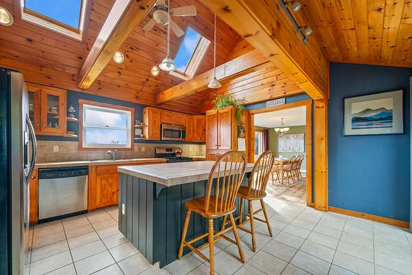 Welcome to country living at its best! This recently remodeled 3+BR/2BATH home sits on 5 private acres just outside of Rangeley Village, offering plenty of space inside and out to enjoy as a vacation home, rental property or residence. Perfect for outdoor enthusiasts, the property includes an attached two-bay insulated garage with lean-to on the side for additional storage PLUS a finished bonus room aboveaEUR"ideal for an office, craft room, or extra sleeping space. Step inside to a spacious mudroom that keeps boots and gear organized before heading into a cozy family room warmed by a wood stove. Just above, you'll find a fun game loft complete with pool table, darts, and seatingaEUR"a great hangout spot for kids or adults alike. The heart of the home is a country kitchen featuring custom cabinets, ceramic countertops, modern appliances, a vaulted ceiling with skylights, and a bar area for entertaining. The kitchen flows into a dining room with oversized windows and swinging French doors leading to a large back deck and screen porchaEUR"an ideal setup for summer entertaining while soaking in mountain views, open lawn, and nearby walking paths. The dining room opens up to the living room, a room out lined with beams and warmed by a woodstove. The main-floor primary bedroom offers a peaceful retreat with its own sitting area and sliding door access to the screened porch. Upstairs, two bedrooms and a A 3/4 bath provide plenty of room for family or guests. The basement offers even more space for storage or future living. Extras include a whole-house generator, on-demand furnace, metal roof, and a brand-new septic system, designed and built for 4 bedroomsaEUR"ensuring comfort and peace of mind year-round.
