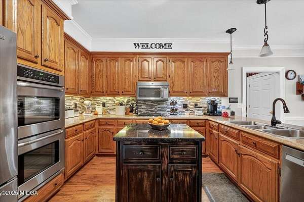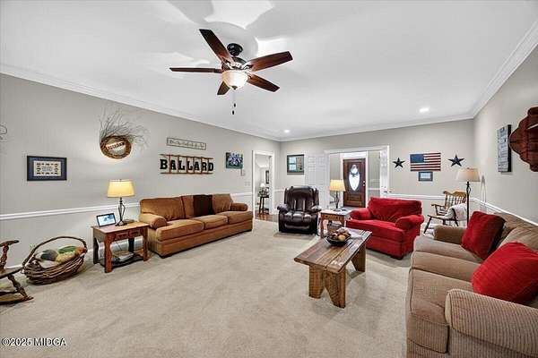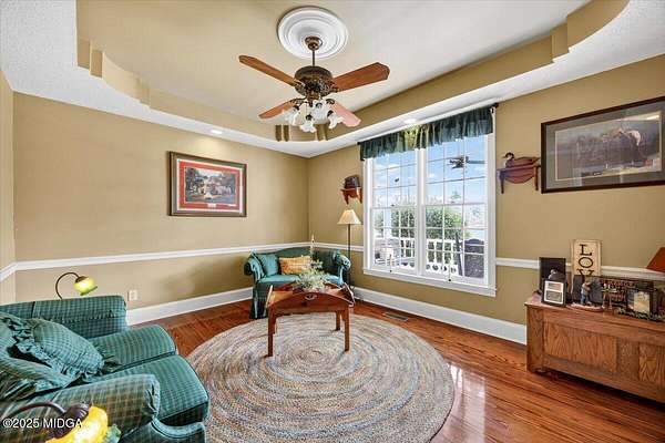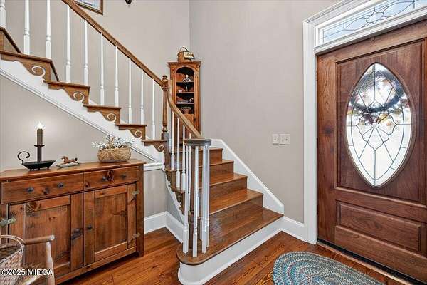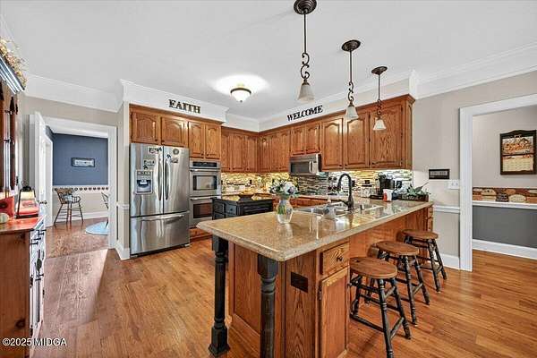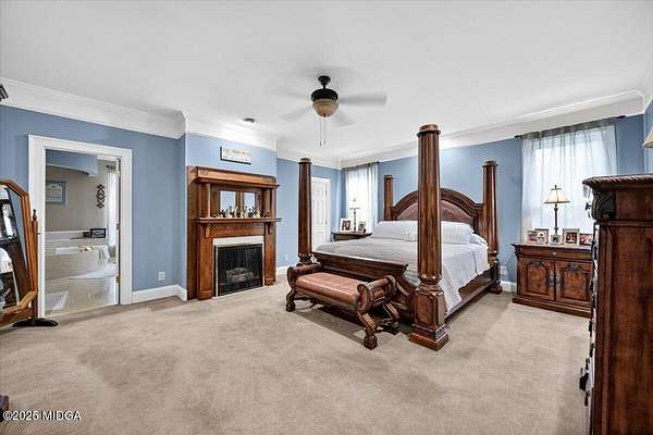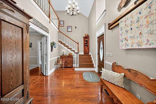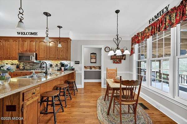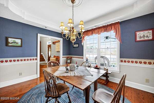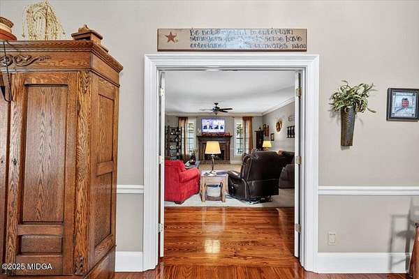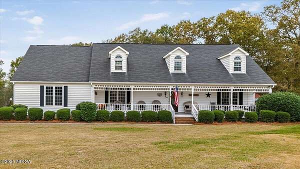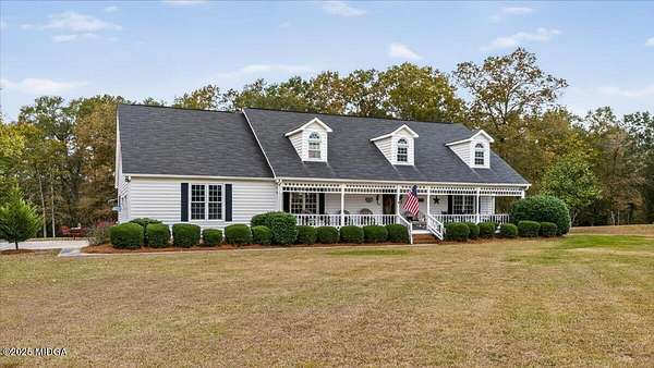 Est $3,830/moCountry living at its best, one owner, custom-built home on 6 acres in Lizella. Four spacious bedrooms, four bathrooms, huge great room w/wood floors, gourmet kitchen, stainless steel appliances, office, separate dining room and breakfast room, covered back & front porches.