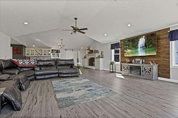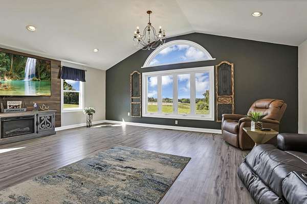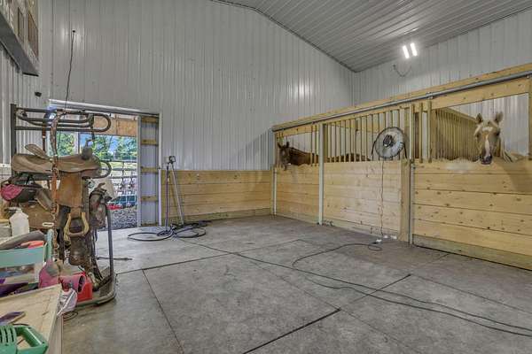 Come see these breathtaking views on nearly 20 acres of privacy with the convenience that is a rarity. Newly renovated large kitchen with Amish cabinets, granite countertops, custom backsplash, and stainless steel appliances. Ceramic tile floor, new carpet throughout bedrooms. Open concept w large utility room. 848sq ft living room with stunning views of the private pond that is great for fishing. Finished basement. 5 car attached garage with breezeway leading to heated barn with electric and plumbing. This barn is currently used as a horse barn with a lean to on the back. And two large fenced in pastures. Theres also a horse arena. This beautiful property with a blacktop driveway is conveniently located within a few miles from the bypass and Crazy Woman Ranch. You can enjoy great deer hunting and beautiful sunsets from your front porch. Location Location Location!!! Agent owned