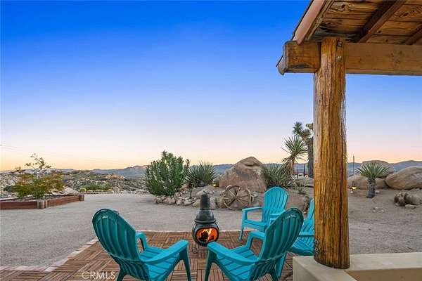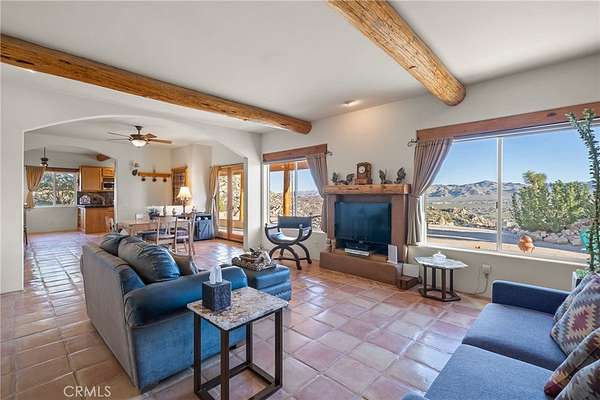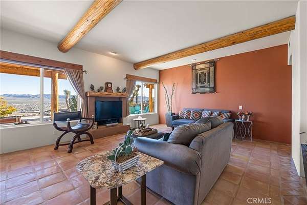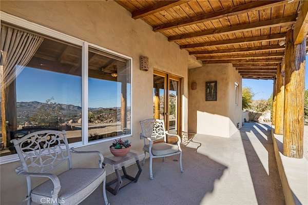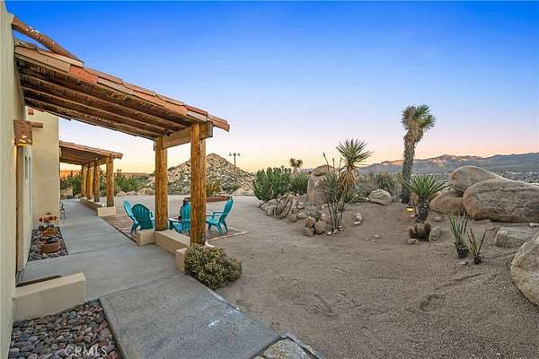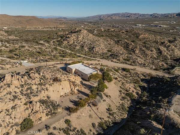 Commanding views from a Western Hills adobe define this elevated custom home, set within Yucca Valley's most sought-after area. Carefully positioned among dramatic granite formations and mature native landscaping, the home offers a strong sense of connection to its surroundings Expansive windows frame natural scenes in every direction. Rock formations, desert flora, and sweeping valley horizons bring light, landscape, and the rhythm of the desert into everyday living.