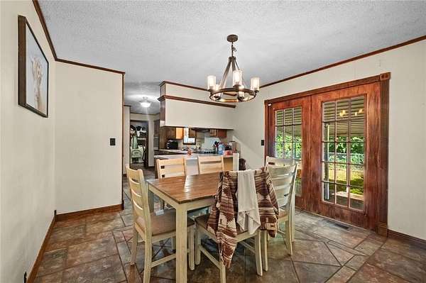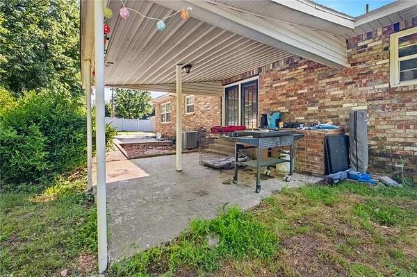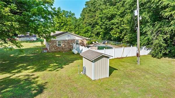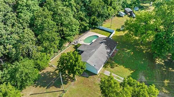 This adorable brick home is tucked into the tree hedge away from the hustle & bustle. The property offers a little over 2 acres a short distance from "Little" Kansas, Oklahoma off Hwy 10 with easy access to the turnpike for commuting to Tulsa, NWA and Tahlequah! The property also boasts a beautiful backyard patio, viewable from the kitchen window, with an in-ground pool and ample space to host family events or friend night. The fenced in back yard for fur babies and kiddos promotes safety and privacy. The interior offers 3 BR with beautiful wooden laminate flooring and matching hardwood doors and 2 BA with recent improvements completed. The laundry room is an easy "mud room" space off the garage which enters into the quaint L-shaped kitchen with extra space in the dining room- all with ceramic tile for easier cleaning and French doors for natural light/view of the woods from your breakfast table! Enjoy a great space to call home! Call today! NOTE: wooded tract not reflected but exist behind dwelling. Short sale*