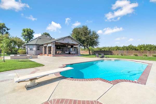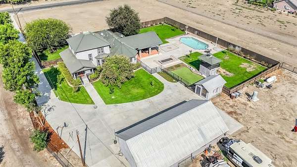 Welcome to a timeless masterpiece, seamlessly blending historic charm with modern luxury. This stunning custom home, originally built in 1917, is nestled on a 2.5-acre lot, in a highly sought after area in North Hanford, in the Kings River Hardwick School District, offering an unparalleled lifestyle of elegance and comfort. Spanning over 2,800 square feet, the residence boasts 4 spacious bedrooms and 2.5 beautifully remodeled bathrooms as of the 2000s. The heart of the home is the beautifully designed family room, dining room and the large gourmet kitchen, meticulously designed with professional-grade appliances, custom cabinets, and every convenience for the aspiring chef. The generously-sized main bedroom is located on the lower level, providing a serene retreat with custom built cabinetry and elegant finishes. For the wine connoisseur, an indoor cellar awaits, ready to house your finest selections. Step outside to your private oasis where a custom outdoor patio and kitchen invite endless opportunities for entertaining. Sharpen your putting skills on your private green, or take a refreshing dip in the heated swimming pool or warm up around the huge custom gas powered fire pit, all enveloped by the tranquility of nature. The extensive grounds include 2 storage buildings and a versatile 6-car garage, offering ample space for vehicles or a workshop for your creative projects and keep those electric bills to a minimum with the owned solar system consisting of 62 panels! This exceptional home not only meets but exceeds every desire, offering a lifestyle filled with luxury, convenience, and timeless appeal. Don't miss your chance to own this exquisite piece of history, perfectly updated for today's discerning homeowner.