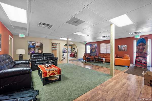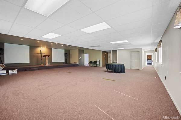 The second building is a well-maintained two-story facility designed for flexible use. It includes multiple multipurpose rooms, two ADA-compliant restrooms, a spacious kitchen and meeting area, and expansive open-concept workspaces. The interior is finished with a mix of carpeting and luxury vinyl plank flooring. The building is equipped with four HVAC units, four furnaces, and a 50-gallon water heater. Access is convenient, with pedestrian entry points located on the west, south, and east sides of the building. A total of 28 parking spaces are available on-site.
