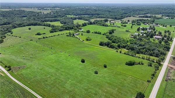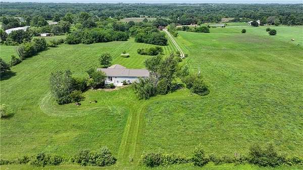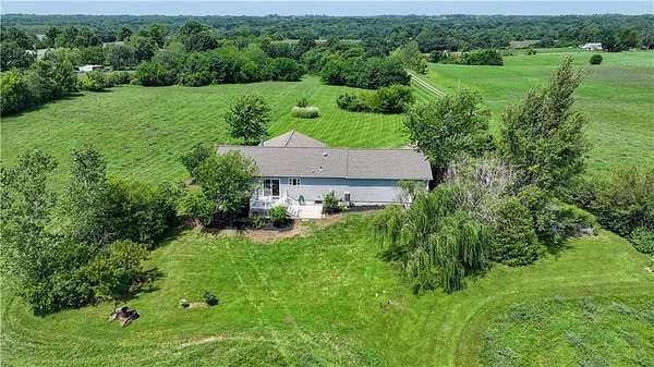 Your Private 30-Acres- A Peaceful Retreat Close to Kansas City Step away from the noise and embrace the quiet country beauty on your 30-acre countryside retreat, just a short commute to Kansas City or Overland Park. USDA Eligible - Confirm with lender Accessible by smooth blacktop road, this property offers peace, privacy, and purpose. Wake up to breathtaking sunrises over open hayfields and end your day with sunsets framed by treed borders perfect for reflection and renewal. The land is cultivated for hay production, yielding three cuttings per year with approximately 28 large (1,500 lb) round bales per cutting ideal for horses or supplemental income. Five acres of mature trees provide a sanctuary for deer, turkey, and wildlife, inviting you to enjoy the blessings of nature. A stocked pond adds serenity and opportunities for fishing or quiet moments by the water. Inside, the move-in ready home features three bedrooms, two full baths, and a main-level laundry with scrub sink. The open-concept kitchen and dining area capture panoramic sunrise and sunset views, while the front porch and back deck offer peaceful spaces for fellowship or solitude. A full basement includes a storm shelter and roughed-in plumbing for an additional bath, and the oversized garage provides room for vehicles, hobbies, and a workshop. Energy flexibility is built in with an all-electric design easily adaptable for solar or generator backup. Two parcels one 20-acre tract and one 10-acre tract offer options for future expansion or multi-generational living. Whether you dream of a hobby farm, raising horses, or simply savoring the quiet gifts of country life, this property delivers privacy, productivity, and proximity to city amenities. Don't wait-make this sanctuary yours today.