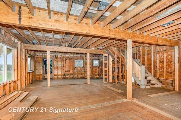 Welcome to 5775 Venoy Rd., an ideal opportunity for those with vision and a passion for country living. Situated on 17.62 acres of tiled, productive farmland. The existing home is a true fixer-upper and has been taken down to the studs, ready for your customization. Major updates already completed include: new second floor windows (all except the two front windows), new electrical with recessed lighting, replacement of several LVL beams throughout, some updated plumbing for the main floor bathroom, and substantial tree removal to clear space for a pasture. Equestrian enthusiasts will appreciate the on-site barn, offering an excellent setup for keeping horses or other livestock. Whether you're dreaming of a hobby farm or a rural retreat, this is a prime piece of land for someone ready to put in the work and make it their own. Don't miss out on the opportunity to call this house your home!