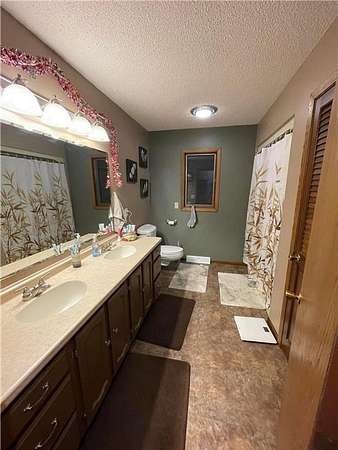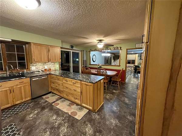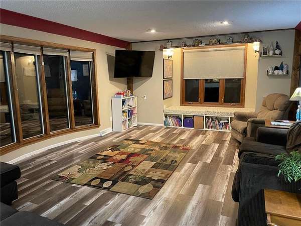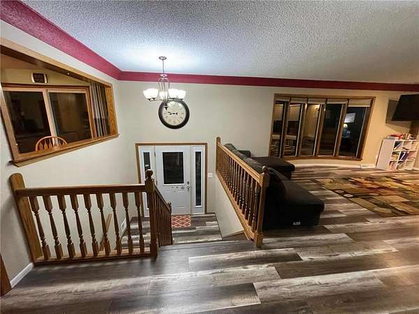 Discover this sizable acreage located on a hard surface road outside of Jackson, MN. This large split-level has a 3 car attached, insulated garage with the 3rd stall also boasting a gas heater. Walking in, you are greeted by a spacious entry with built-in cabinets, coat hooks, and a 3/4 bathroom. Prepare gourmet meals with a recently updated eat-in kitchen with numerous cabinets, ample counter space, and a walk-in pantry. Just off the dining area is a large covered deck which makes the perfect place to enjoy your morning coffee. A large office/bedroom is just off of the kitchen and features two closets. An updated living room features an open floorplan with lots of natural light, a reading nook, built in book shelves, and storage. To round out the upstairs, you have the master bedroom, a full bathroom with a large closet and his/her sinks and a smaller bedroom that works great as a nursery or home office.