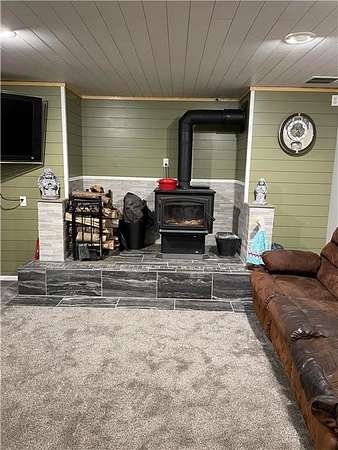 The large second staircase takes you downstairs to a spacious living room that includes a large wood burning stove capable of heating the whole house during the winter. Downstairs also features a large bedroom/toy room, full bathroom, two more bedrooms, a laundry area and final bedroom/storage room.