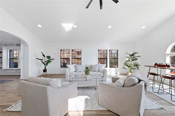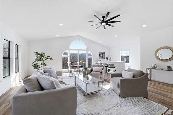 Nestled on 5.2 picturesque acres, this stunning property offers the perfect blend of open space and mature trees that frame the landscape beautifully. Enjoy peaceful lake views from inside the home, with the ability to take a short stroll and experience the water up close. Located just minutes from the historic Beaver Bridge, this thoughtfully designed home features 3 bedrooms and 2.5 bathrooms, along with a spacious great room ideal for gathering and entertaining. A dedicated office provides the perfect work-from-home space, while the wet bar and additional living area offer flexibility for hosting, relaxing, or creating a second family room. Whether you're seeking privacy, versatility, or serene country living surrounded by nature, this property delivers it all. Seller is motivated - bring your offer!