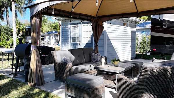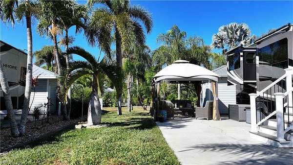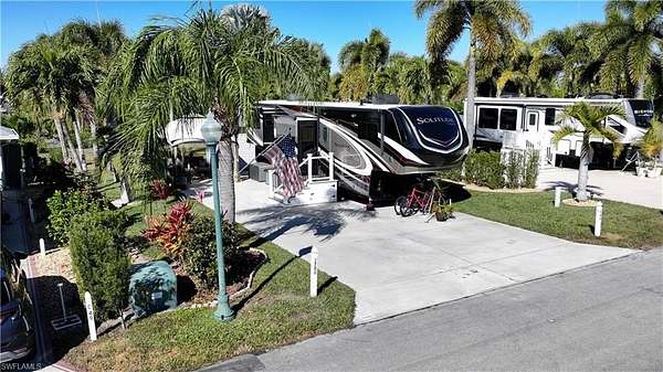 Located in the highly sought-after Cypress Woods RV Resort, Lot C48 offers over 4,100 square feet of well-maintained outdoor living space with a peaceful and private setting. This east-facing property features established palm trees that provide natural shade, privacy, and a true tropical ambiance. The lot backs to a common area, creating an open feeL. The concrete pad is in excellent condition, offering a solid, low-maintenance foundation, and the spacious layout provides room to expand or customize to suit your outdoor living needs. A fully finished accessory building adds functionality and convenience. Cypress Woods RV Resort is a gated, pet-friendly community offering resort-style amenities, including two heated pools and hot tubs, clubhouse, fitness center, pickleball, shuffleboard, billiards, and an active calendar of social events. The resort accommodates Class A motorhomes, fifth wheels, and Class C RVs. Conveniently located in Fort Myers, just minutes from beaches, shopping, dining, and Southwest Florida attractions. A great opportunity to own a private, tropical RV lot in one of the area's premier luxury RV resorts.