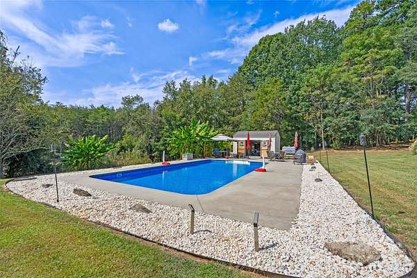 Outdoor Enthusiast Dream! This home is the definition of Farmhouse Charm. Sitting on over 3+acres, boasting a beautiful inground pool w/ pool house, equipped with a 24 x 40 metal garage, AND complete with a barn for lawn equipment storage or holding animals. There are truly too many extras about this house to list them all, you must see to appreciate. There is plentiful parking for multiple vehicles, boats, RV's, your camper, or whatever hobby toys you have for outdoors. This home has been extremely well kept and loved. The house is situated on the hilltop overlooking beautiful pasture views. The front porch is one that is reminiscent of a time past where long conversations are treasured. and time spent unwinding was welcomed. With is coastal vibe and comfortable feel you are sure to want to sit a while. The pasture/acreage is large enough to hold cows or horses if you are so inclined. The deer make regular visits to see what's going on around " Woebegone" today. If you are searching for your little piece of paradise, this is IT! Tucked away on the hill you have privacy and space, but yet are still conveniently close to Denver, stores, gas and restaurants. Book your tour today.