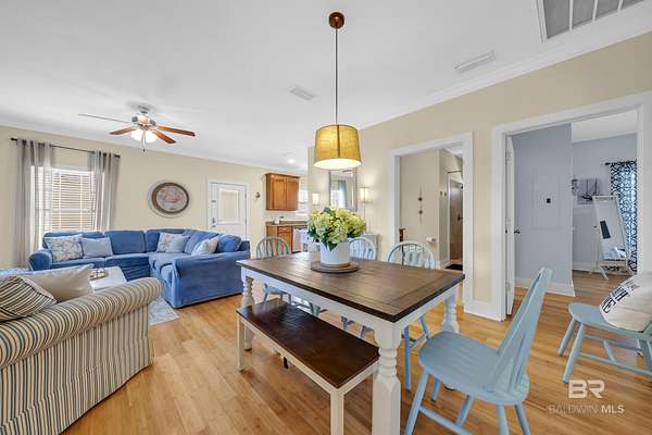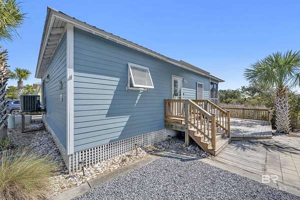 Welcome to this charming, beautifully upgraded cottage in the sought-after The Rookery III community! Tucked away on a wonderful private lot that backs up to peaceful natural wetlands, you’ll love the extra sense of space, privacy, and serene coastal views from the screened-in porch — plus an added deck area perfect for relaxing or entertaining outdoors.Inside, the home features bamboo flooring, granite countertops throughout, crown molding, and a bright kitchen with stainless appliances, recessed lighting, and pantry. Both bathrooms are finished with travertine showers and flooring, giving a spa-like touch. Built-in bunk beds make this property a guest favorite and for strong rental potential.Recent improvements include a new AC unit installed in 2024, as well as a gravel parking area for added convenience and functionality.Enjoy two outdoor pools and quick access to the beach, public boat launch, golf, marinas, and historic Fort Morgan. Sold fully furnished and rent-ready with all appliances, including washer and dryer conveying, this cottage is ideal as a beach getaway, investment property, or full-time coastal retreat. This cottage was never rented by the owners and is in excellent condition! Buyer to verify all information during due diligence.