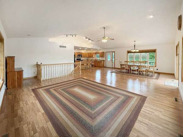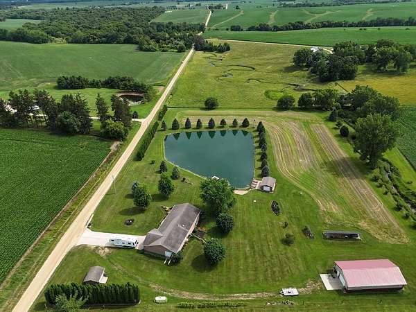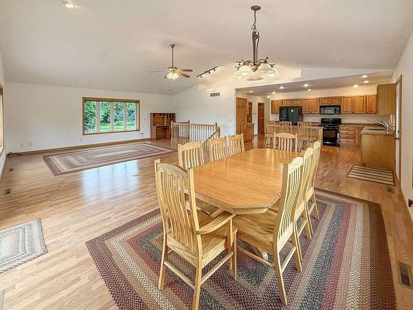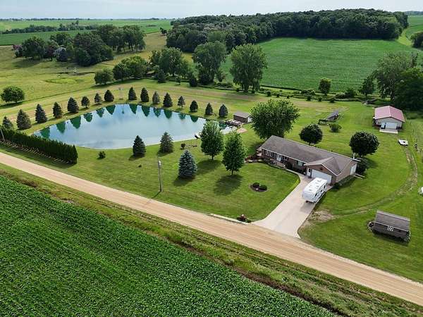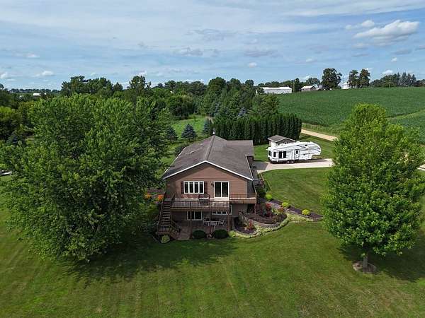 Experience the perfect blend of comfort, space, and stunning scenery - Stocked 8-9' Pond, exceptional one owner home built in 2005 home situated on 8 acres mol. Boasting 3 bedrooms, 2.5 bathrooms, plus a non conforming bedroom or office in the finished walkout basement, this home offers 1,632 square feet of thoughtfully designed living space on each level. The open floor plan is filled with natural light and offers breathtaking views from nearly every room. The main level features a spacious kitchen with a center island, laundry with half bathroom, oak trim + finishes, and beautiful 6-panel doors. The walkout lower level is ideal for entertaining with a cozy wet bar and versatile living space. An oversized 25' x 38' attached garage provides ample room for vehicles and storage, while the heated, finished shop (built in 2007) measures 28' x 56' with 10-foot ceilings-perfect for hobbies, projects, or a home business. A separate 16' x 24' garage with an attached deck, built in 2014, adds even more flexibility to this one-of-a-kind property. This is a rare opportunity to enjoy rural living with all the modern amenities you could ask for-don't miss it!