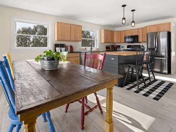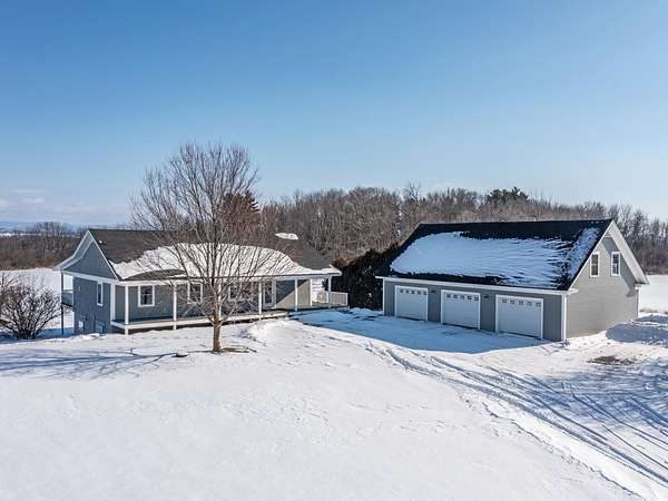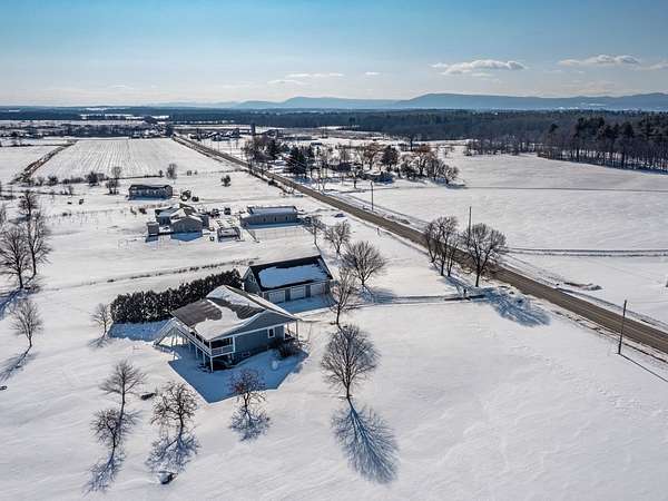 Welcome to this beautifully maintained, turn-key home in Addison County, offering scenic views of the Green Mountains and Camel's Hump and spacious living on more than 10 private acres. Designed to support largely one-level living, the home features a functional mudroom, a modern kitchen with updated appliances and a spacious pantry, and an open living and dining area with hardwood floors. The main level includes a bedroom suite and an additional flexible room suitable for a home office, hobby space, or other uses. The lower level offers two additional bedrooms, a full bathroom, a large den, and generous storage. Pride of ownership is evident throughout, with recent updates including new windows, energy-efficient heat pumps for heating and cooling, updated carpeting, countertops, and more. Outdoor spaces include a covered front porch and an expansive back deck overlooking an in-ground pool and surrounding landscape. Watch the sunset from the porch and sunrise from the back deck! Additional highlights include a three-car garage with loft storage and potential for future finishing for bonus space. This modern, well-kept home is located close to Vergennes, Middlebury and Lake Champlain, this property offers comfort, versatility, and access to recreation and local amenities.