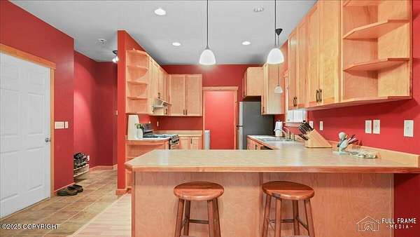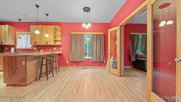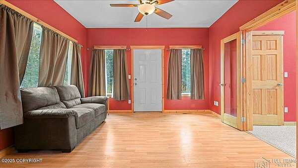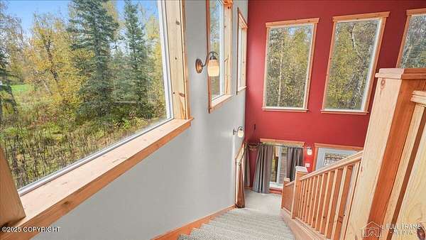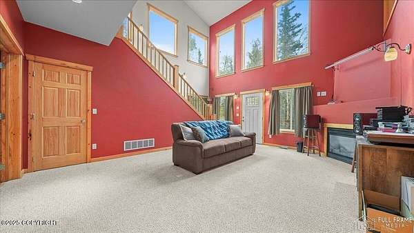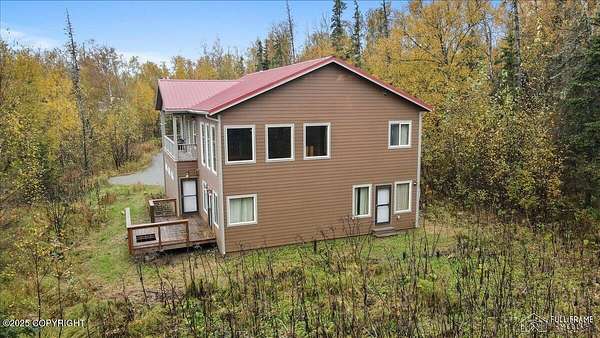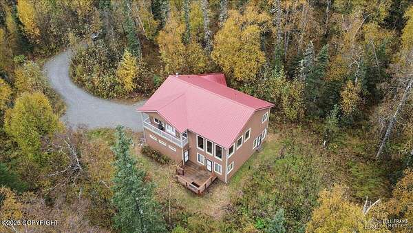 Est $2,933/moWell built home nestled in the middle of 4 acres of land. Huge living room with soaring ceilings just off the kitchen and dining area. Open staircase to the bedrooms upstairs. Very quite feel. This is a Wirtenen House. Detached shop with 200 amp service to run heavy woodworking tools. Just a short hop to Hatcher Pass, Palmer ,and to the highway via Trunk Road