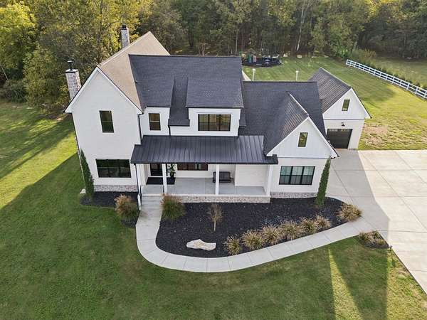 Price Improvement! Where modern elegance meets rural serenity--this custom-built 4 bed, 3.3 bath luxury estate offers refined craftsmanship, inspired design, and every amenity for intentional living on 5 private acres. Step inside to an open-concept masterpiece with sunlit living and dining spaces anchored by a chef's kitchen featuring floor-to-ceiling cabinetry, dual raised islands with double sinks, hidden walk-in pantry, and premium stainless appliances. A full mudroom with custom drop zone and half bath welcomes you from the garage. Dual primary suites provide ultimate flexibility--one on the main level with soaking tub, tiled shower, and large walk-in closet; another upstairs with private foyer, covered patio access, walk-in steam shower, and custom closet with spiral stairs leading to the downstairs study. There you'll find a hidden door revealing a 10x10 reinforced safe room--offering peace of mind and security. Two dedicated offices and a large bonus room create ideal spaces for work, study, and entertainment, with laundry rooms on both levels for convenience. Outdoors, unwind beneath covered patios--one with a wood-burning fireplace, another with gas grill hookup--overlooking a stunning tree-lined private backyard. Enjoy company on the expansive deck or the stone fire alcove. Then settle into your private mini-farm retreat, complete with custom chicken coop, fenced gardens, well water, and mulched playground. Extras include a Halo 5 whole-home water filtration, a golf cart for travel, and multiple EV chargers. This is more than a home--it's a destination. A place to retreat, reconnect, and build your legacy. Welcome to your modern Tennessee homestead.