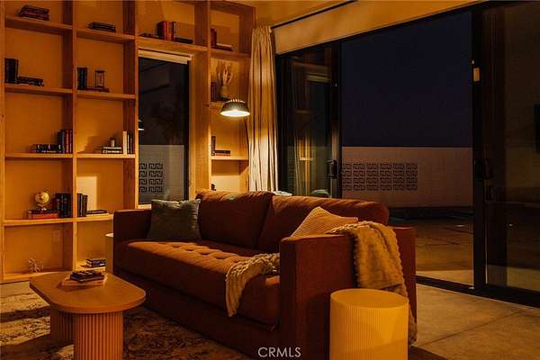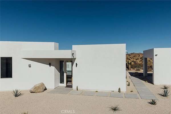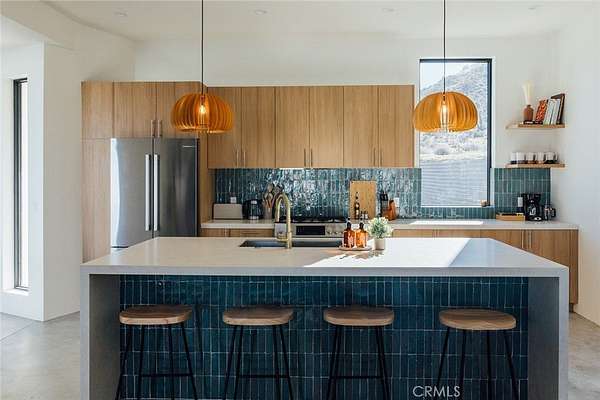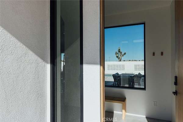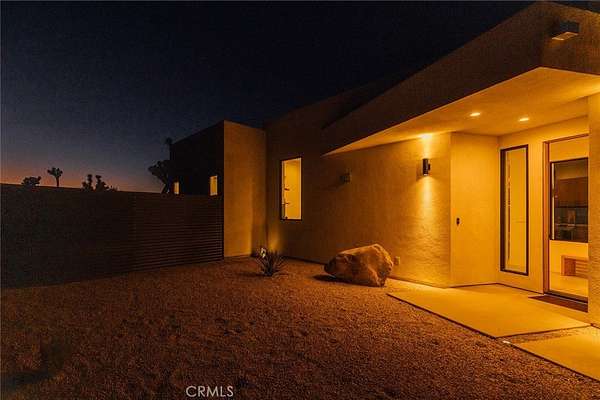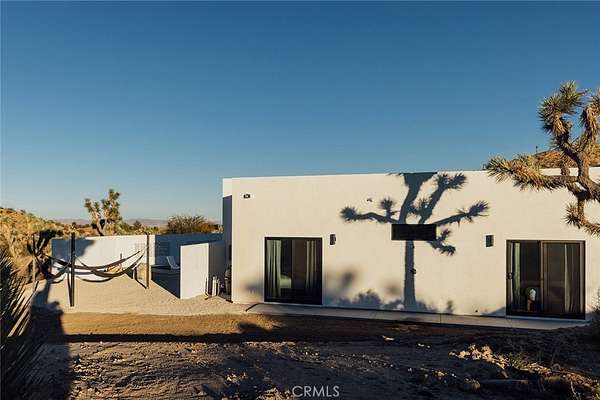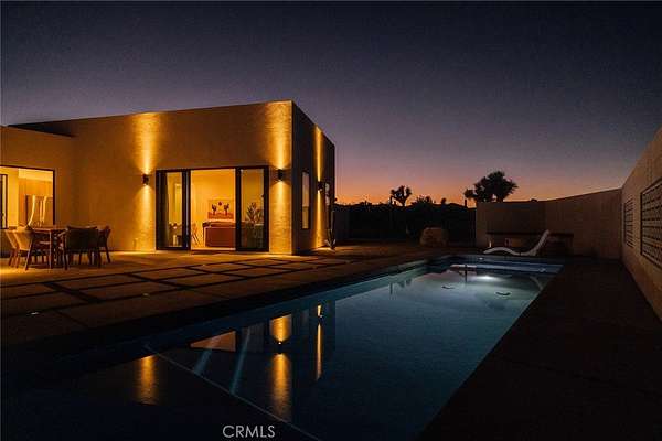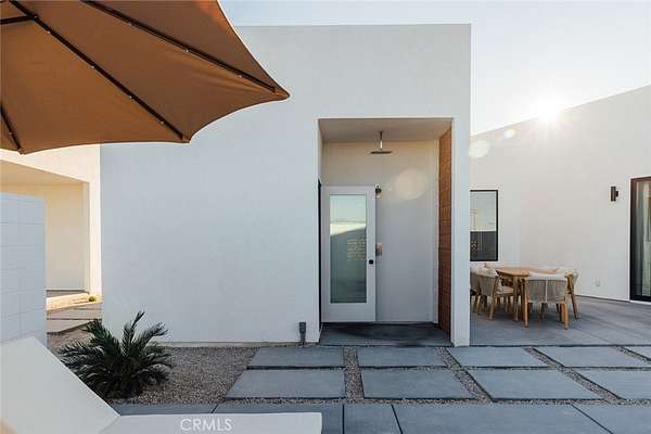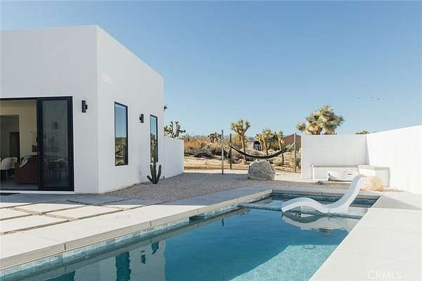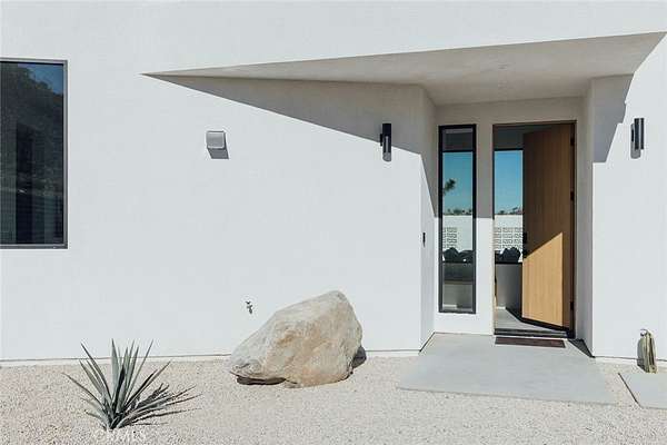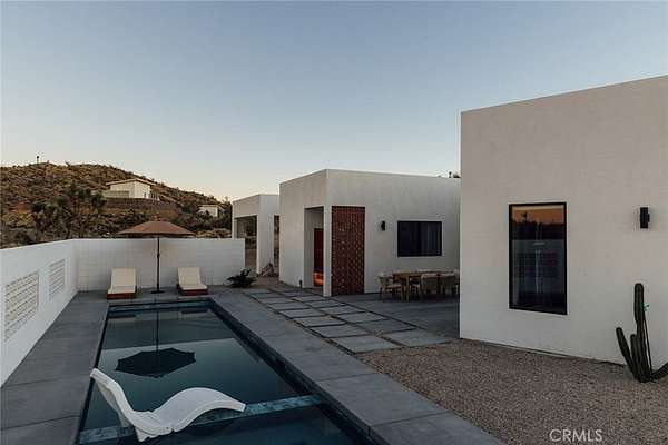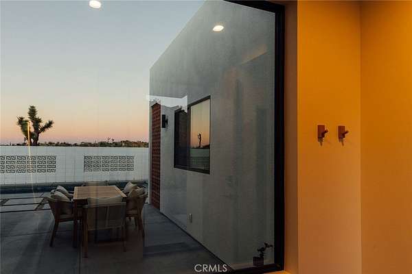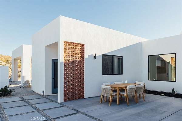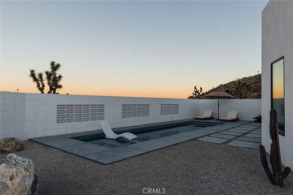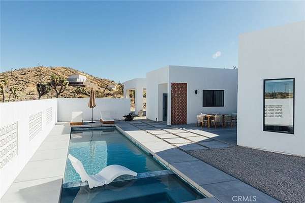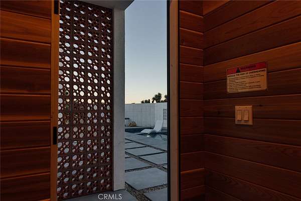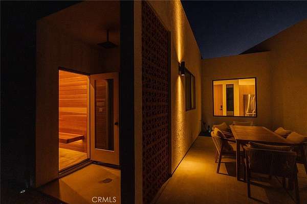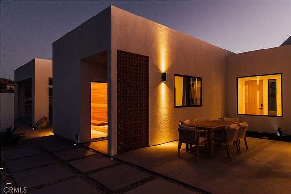 An oversized mahogany front door opens into the simple, beautiful entry where your eye is immediately drawn through a picture window to the private courtyard and pool beyond. Inside, the open kitchen and living area feels airy without being oversized, thanks to 10-foot ceilings and a thoughtful layout. Moroccan zellige tiles run throughout the home, adding warmth and texture, while a custom built-in bookshelf gives the livingroom personality and purpose. Easy indoor/outdoor living and dining is accessible with the massive glass double-sliding doors. The kitchen is finished with Bosch appliances, ample storage, and a smart flow that works just as well for entertaining as it does for everyday living. A conveniently placed half bath sits just off the entry. The bedroom layout is intentionally designed for privacy. Each room is set apart and finished with 9-foot ceilings, creating a calm, restful feel throughout. The primary suite is a true retreat, with a walk-in closet, double vanity, spa-like soaking tub, and separate walk-in shower. Two additional bedrooms and a shared bath, as well as outdoor shower, are tucked quietly at the opposite end of the home. Not to be outdone by the interior, outside is where this home really comes to life. A private, block-walled courtyard centers around a heated 35-foot saltwater pool and spa. Nearby, a cedar sauna and outdoor shower sit behind a sculptural terra-cotta breezeblock wall. A built-in firepit with seating and nearby hammocks create the kind of space where evenings stretch longer than planned. With an elevated lot, two-car carport, Tesla charger, Starlink WiFi, and incredible light throughout the day, this is a home that's easy to love and hard to leave. Offered fully furnished and completely turnkey, this amazing desert residence is ready to move into or place directly into service as an investment property with high-cashflow potential. Don't let this opportunity pass you by - Call your agent for a private showing today.