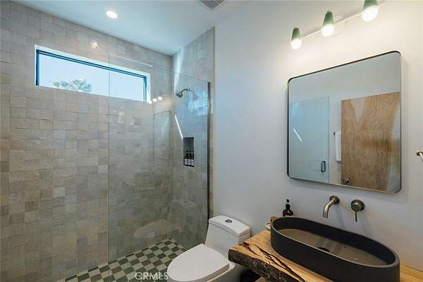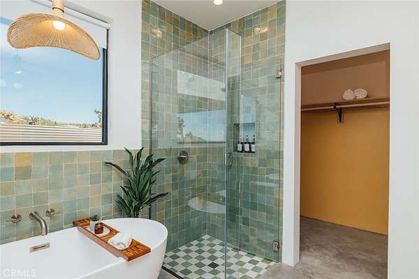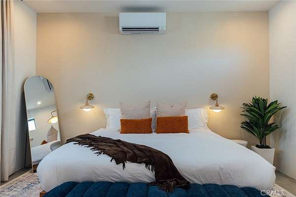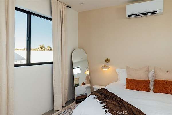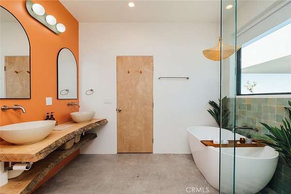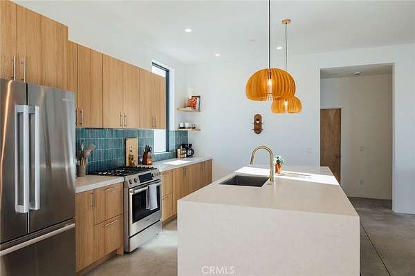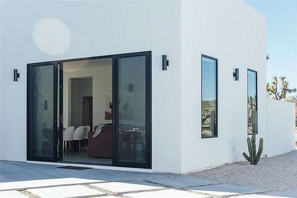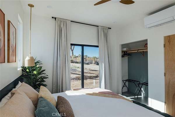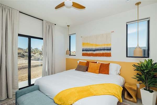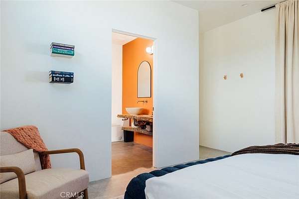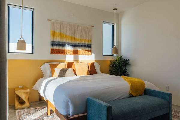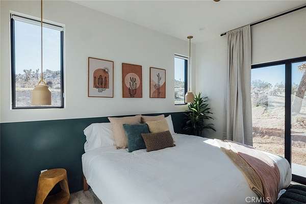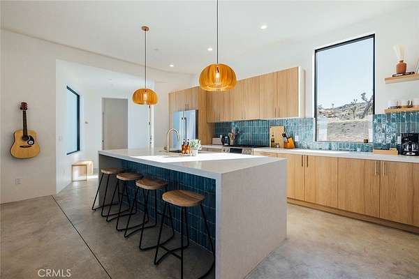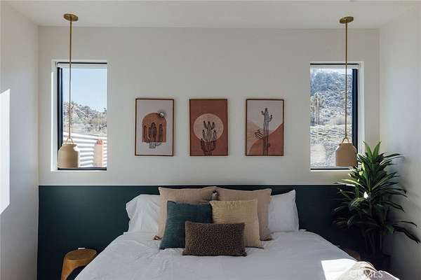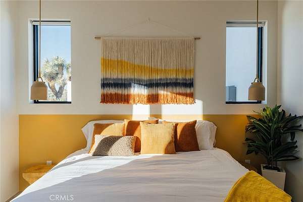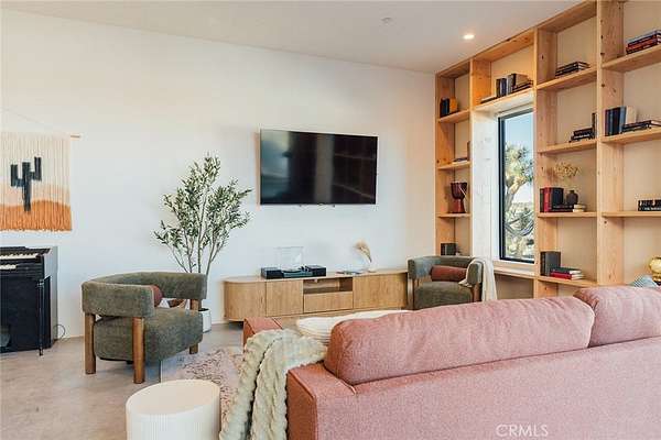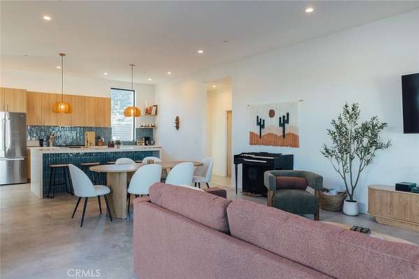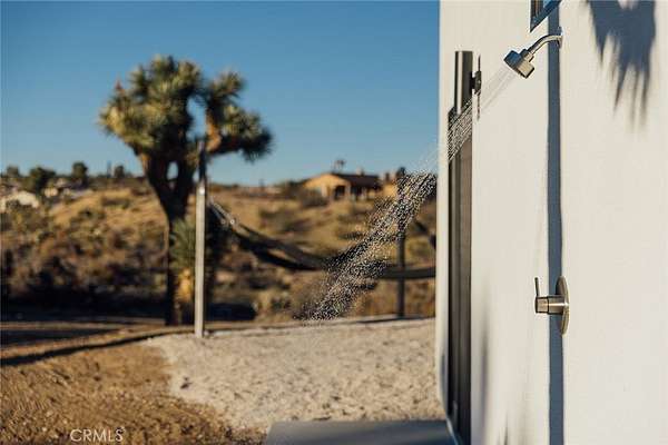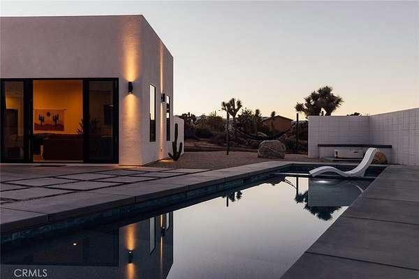 An oversized mahogany front door opens into the simple, beautiful entry where your eye is immediately drawn through a picture window to the private courtyard and pool beyond. Inside, the open kitchen and living area feels airy without being oversized, thanks to 10-foot ceilings and a thoughtful layout. Moroccan zellige tiles run throughout the home, adding warmth and texture, while a custom built-in bookshelf gives the livingroom personality and purpose. Easy indoor/outdoor living and dining is accessible with the massive glass double-sliding doors. The kitchen is finished with Bosch appliances, ample storage, and a smart flow that works just as well for entertaining as it does for everyday living. A conveniently placed half bath sits just off the entry. The bedroom layout is intentionally designed for privacy. Each room is set apart and finished with 9-foot ceilings, creating a calm, restful feel throughout. The primary suite is a true retreat, with a walk-in closet, double vanity, spa-like soaking tub, and separate walk-in shower. Two additional bedrooms and a shared bath, as well as outdoor shower, are tucked quietly at the opposite end of the home. Not to be outdone by the interior, outside is where this home really comes to life. A private, block-walled courtyard centers around a heated 35-foot saltwater pool and spa. Nearby, a cedar sauna and outdoor shower sit behind a sculptural terra-cotta breezeblock wall. A built-in firepit with seating and nearby hammocks create the kind of space where evenings stretch longer than planned. With an elevated lot, two-car carport, Tesla charger, Starlink WiFi, and incredible light throughout the day, this is a home that's easy to love and hard to leave. Offered fully furnished and completely turnkey, this amazing desert residence is ready to move into or place directly into service as an investment property with high-cashflow potential. Don't let this opportunity pass you by - Call your agent for a private showing today.