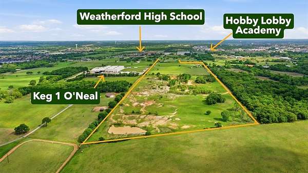 PRIME 50 + - acres in Weatherford, Texas just inside city limits, allowing for 3 potential future-use zoning types. Location, location, location offering approximately 384 feet of road frontage along BB Fielder, a main arterial road that parallels the I-20 running East - West. This premier property has many features beneficial for future development. The 50+ - acres is a combined 4 parcels of various sizes. The current zoning is Agricultural (AG1.) The City of Weatherford has 3 future zonings designated across the 4 parcels - Economic Mix (office, medical, business use), C1 Commercial use, and Suburban Residential. Located within City of Weatherford city limits, utilities run along BB Fielder for potential future development. Property has many acres of native grasses and not many trees on the front two thirds of it, with the treed areas being on the back portion. A truly unique opportunity that can remain a great residential ranch opportunity, or parcel out with development down the line. Not many of these types of parcels available in Weatherford that have the large tracts of cleared land, located so close to town.