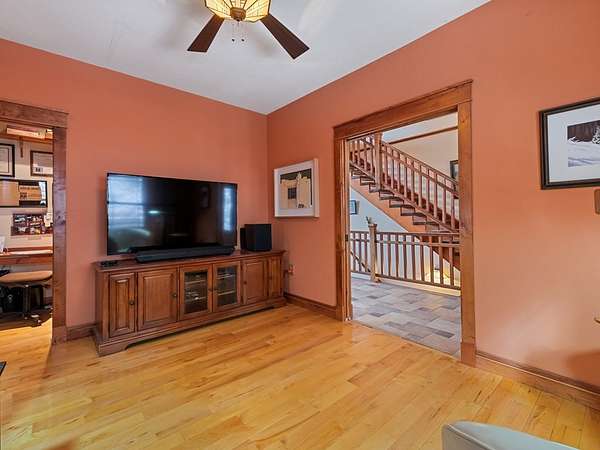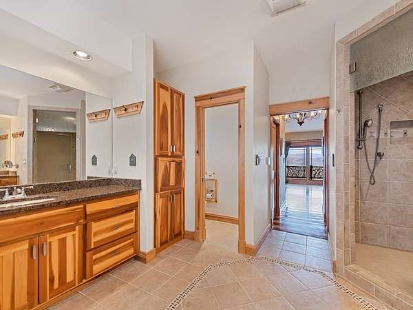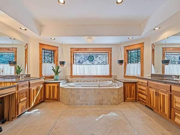 - Ceiling Fans, Ceramic Tile Bath, Island, Main Level Living, Open Floor Plan, Pantry, Primary On Main Level, Whirlpool Tub