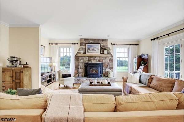 Topline Farm stands apart from other equestrian properties w/a rare blend of high-quality finishes, elegance, privacy, warmth, thoughtful layout & functionality in both the residence & the farm. Nestled in a secluded setting w/views overlooking pastures & gorgeous evening sunsets, the sun-filled custom farm-style home features a 1st floor primary suite, open floor plan, 2 fireplaces, high-end appliances, home office, ready-to-finish walkout basement (w/laundry & plumbing for full bathroom), large unfinished space on 2nd floor w/vaulted ceiling, both offering additional finishable living space for recreation or a secondary living suite, 2-car attached garage & 2-car detached garage w/walkup loft. Other features include wide-plank oak floors, high ceilings, striking millwork, built-in cabinetry, pellet stove inserts in both fireplaces, large deck w/fenced area for pets & 2 covered porches. Updates include roof on residential structures (2018), HVAC (2022/2025), house & barn exterior paint (2023/2025). Gold Medal winning horse farm w/8-stall King Construction barn w/HardiBoard, tackroom w/radiant heat & sink, heated grooming stall, hot & cold water, feed room, storage room & full-sized hayloft, 2-stall stand-alone barn, airy indoor arena w/ArenaWorks Gold footing (2018), mirrors (2025), large windows, slanted kickwall, & multiple doors, 9 pastures & large run-in sheds. Near riding trails & Alexandria Park. Enjoy sophisticated country living commutable to NYC by car/bus/train.