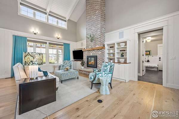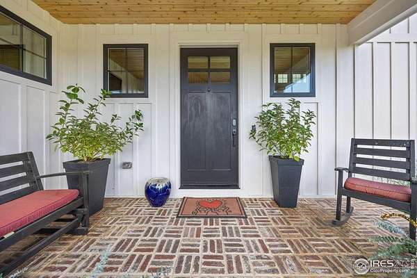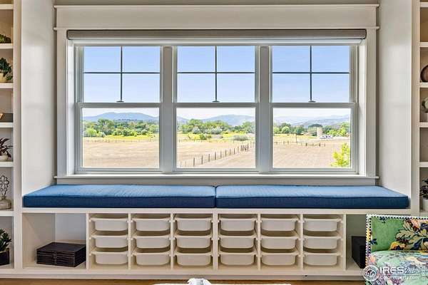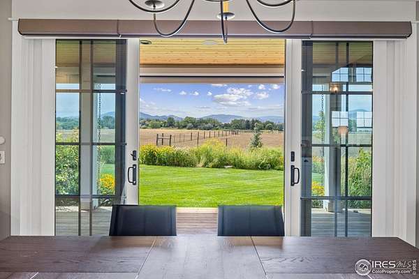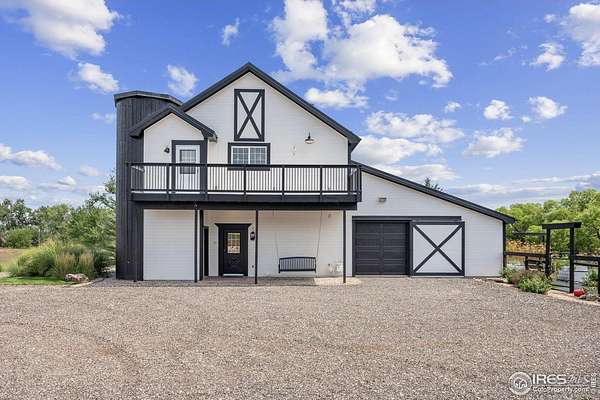 Schedule a visit to see an extraordinary 20-acre estate where elegant design & expansive mountain horizons define everyday living. Enjoy breathtaking sunsets from the west-facing wraparound porch. Every detail, from the home itself to the grounds, has been curated to balance natural splendor w/luxurious convenience. A dramatic floor-to-ceiling fireplace anchors the great room, while the chef's kitchen blends professional-grade appliances w/an expansive island, custom cabinetry & charming eating nook. Several sets of double sliding glass doors showcase mountain views & create an effortless flow to the home's outdoor living spaces. The primary suite is a sanctuary w/serene views & a spa-inspired bath. A finished basement introduces flexible living w/a full bath, surround sound & media/lounge space. The addition of a custom 4-person elevator makes every level accessible, opening the home to all stages of life. Throughout, custom electric blinds, designer lighting & tailored drapery enhance each space w/refinement. Outdoor living is equally compelling. A covered porch spans the west side of the home, creating comfort & usability throughout the day. The grounds feature multiple outbuildings, including a full guest apartment, a gardening shop & a fenced garden -ideal for cultivation or reimagined as the site for a resort-style swimming pool w/pool house. A freshly painted carriage house adds utility & presence, while the acreage offers excellent potential for equestrian facilities. Landscaped lawns, gardens & a spring fed private pond complete the retreat-like atmosphere. Though wonderfully private, outdoor adventure is close by, w/trails, lakes & quick access to Big Thompson Canyon & Rocky Mountain National Park. The property has also benefited from an EXTENSIVE LIST OF IMPROVEMENTS since current owner purchased it. This is more than a home-it is a sanctuary of luxury, versatility & peace in an unforgettable setting.