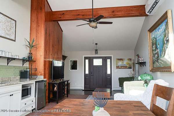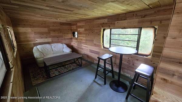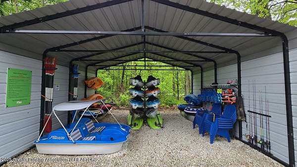 1300 feet of Grand River Frontage. Business Opportunity. Newly Renovated. Cabins to be added along with a wrap around Deck on the pool that attaches to the Bunk House. Situated on 76 acres of private, wooded landscape along the scenic Grand River, this unique property offers an exceptional blend of natural beauty, recreational opportunities, and income-producing potential. Designed to accommodate large groups, retreats, events, or a multi-use hospitality business, the estate includes a spacious main residence, a bunkhouse, multiple outbuildings, and several new cabins currently under construction. The property features extensive river frontage with a private dock, sandy beach area, and open access to the water for boating, kayaking, and fishing. Groomed trails wind throughout the acreage. offering abundant opportunities for hiking, wildlife viewing, and outdoor exploration. The main house provides generous living space with river views and a wood-burning fireplace, while the adjoining Florida Room adds additional gathering space with year-round usability. Modern mini-split systems supply individualized heating and cooling throughout the main structures. The bunkhouse serves as a versatile recreational and sleeping area, complemented by a large boathouse structure that functions as an activity, storage and gaming hub. Outdoor amenities include multiple fire pit areas, several grilling options, and a pavilion with solar lighting-ideal for entertaining, events, or group gatherings. Significant expansion is underway with three new cabins (each designed to sleep four), a camper and clubhouse, and a forthcoming above-ground pool with a wraparound deck connecting directly to the bunkhouse-scheduled for completion this spring. A 30' x 60' barn with a loft adds further utility for storage or sleeping, workshop use, or additional lodging potential. The property also includes an enclosed fence screen storage area-creates a turnkey opportunity for additional revenue through outdoor storage operations. This sale includes all on-site structures, furnishings, equipment, and existing future bookings, allowing the next owner to seamlessly continue operations as a short-term rental business, private retreat venue, or multi-family estate. Take a look at the property.