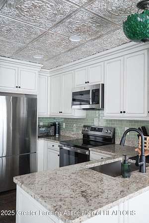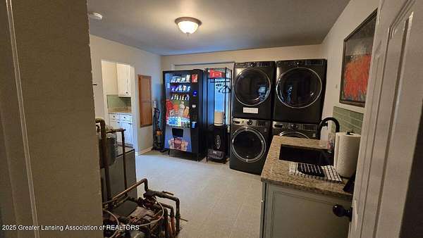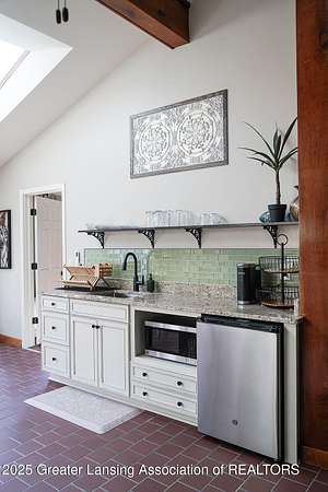 - Bar Fridge, Dishwasher, Disposal, ENERGY STAR Qualified Appliances, ENERGY STAR Qualified Refrigerator, Electric Range, Microwave, Washer/Dryer Stacked, Water Heater