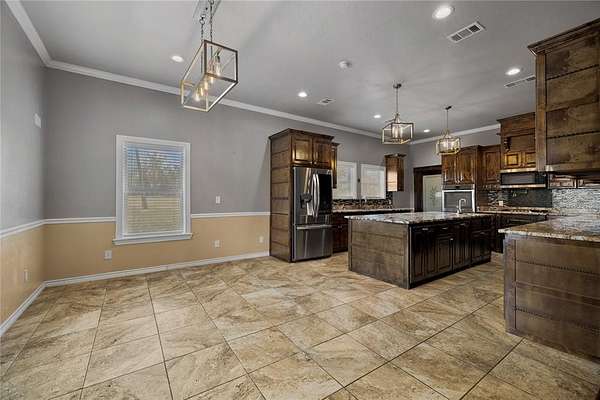 Welcome to a truly rare find in Northeast Texas situated on 8 gated acres on a major highway with lots of traffic exposure, not one butTWO large shops, a home and room to grow! The smaller of the 2 shops sits at approximately 3,900 sf and has an office & bathroom already finished out, making it ready for business. The larger shop is approximately 7,400 sf complete with electric & water, just waiting for your business to move in. Each shop has bay doors as well as man doors for access. Use one shop, lease the other...the possibilities are endless! Then talk about no commute. The main residence on the property is expansive and thoughtfully designed, featuring5bedrooms (+), 4.5 baths, two spacious living areas, an oversized kitchen --perfect for entertaining or everyday living. Downstairs you'll find the spacious primary suite, a cozy living area with fireplace, and two additional flex rooms. Upstairs offer a second living area, multiple bedrooms, two additional flex rooms ideal for a media room, workout space, or oversized closets. Call today to schedule a showing to see what all is offered at this incredible price!
