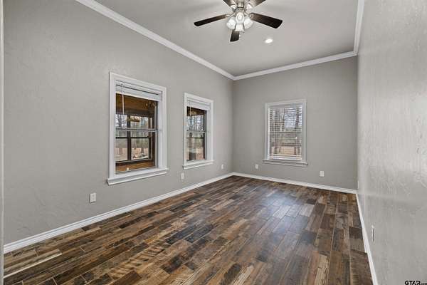 Welcome to a truly rare multi-use estate in Northeast Texas, offering just over 8 gated acres with the ideal blend of luxury living, business potential, and room to spread out. The main residence is expansive and thoughtfully designed, featuring 5 bedrooms (with flexibility for more), 4.5 baths, and two spacious living areas. You'll be in awe of the oversized kitchen--complete with granite countertops, a large island, walk-in pantry, separate cooktop with pot filler--perfect for entertaining or everyday living. Downstairs you'll find the spacious primary suite, a cozy living area with fireplace, and two additional flex rooms that can easily serve as a home office, sunroom, gym, or creative space--make it your own. Upstairs offers even more versatility with a second living area, two ensuite bedrooms, two additional flex rooms ideal for a media room, workout space, or oversized closets, plus two more bedrooms and another full bath. Step outside to enjoy an inviting outdoor kitchen and firepit, tucked among thoughtfully cleared trees--great for relaxing or hosting guests. A lean-to shed provides shelter for a horse or other animals, adding to the property's versatility. For those needing serious workspace, this property delivers with two large shops--approximately 7,400 sq ft and 3,900 sq ft--both on concrete slabs with electric and water. The smaller shop includes an office with a half bath, ready for immediate use. Whether you're looking to live and run your business from one location, expand your operations, or simply enjoy wide-open space with upscale comfort, this one checks every box. Come see all this exceptional property has to offer!