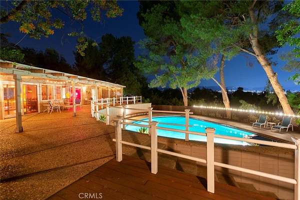 About the residence o Classic ranch style, single story, 4200 sq ft. 5 bedroom, 5 bathroom o 1.8 total acres (approx.) o Large pool / spa, fruit orchard and horse corral o Minutes from the Long Valley gate, 101 freeway, the Calabasas Commons, The Village at Topanga, Topanga & Malibu Canyon beaches