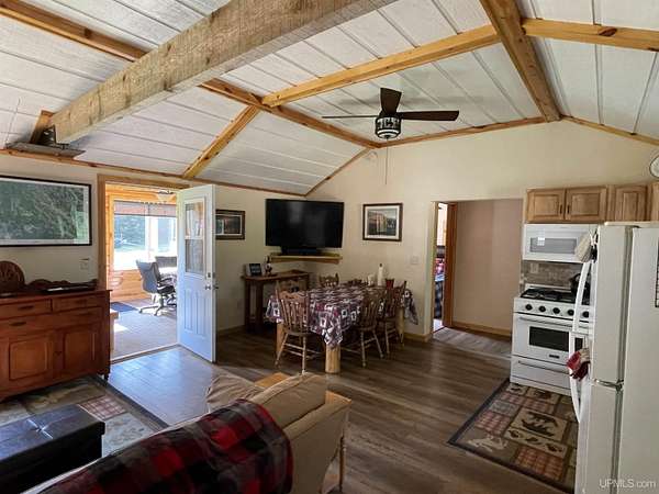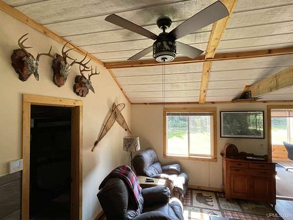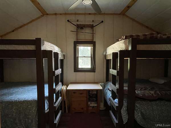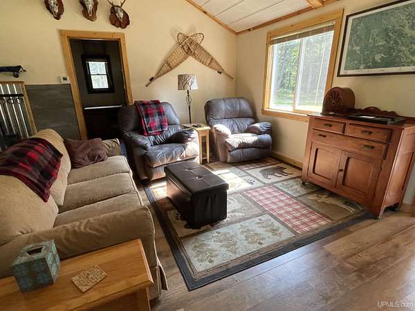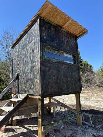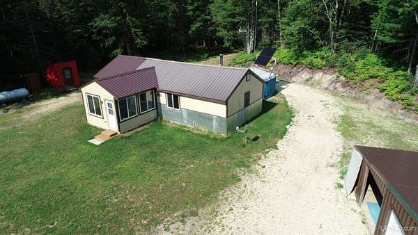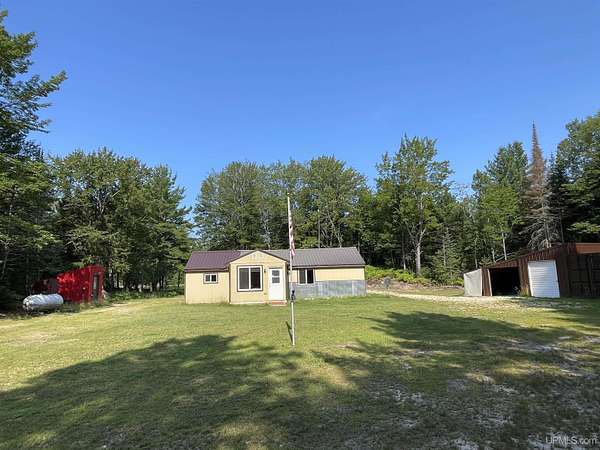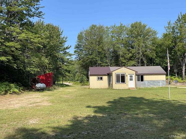 Get away to total Upper Peninsula privacy and seclusion at this ultimate private camp on 119 acres located about 20 miles north of Manistique. Three sides are state forest and you can walk over state land directly to West Branch of the Manistique River. The property fronts on Cal’s Drive, a good trail road that is typically accessible most of the year. The land is a mix of high and low ground with wooded ridges, trails and dense forest throughout. Deer, bear, grouse, and other wild game are common in this area and some very nice deer blinds and a young apple orchard are included. The property is enrolled in the Qualified Forest Program saving money on taxes and assisting with your forest management plans. A large yard surrounds the comfortable cabin used as a hunting lodge and family retreat. An open living dining and kitchen area with vaulted ceiling leads to the sun room great for a game of cards or just hanging out with friends. There is a bedroom and full bath on one end and a bunk room with 4 double beds on the other. The cabin is powered by an off grid power system that includes the generator, solar panels, and battery storage. With well and septic and appliances and most furnishings included, this recreational retreat is ready for you to enjoy! The outbuildings are ready for your needs including a metal storage building with an attached storage container. The generator is securely housed in a metal building and there is a separate wood storage bin conveniently located by the back entry. The recreational trail system is nearby as is Pictured Rocks National Lakeshore, the Hiawatha National Forest, Seney National Wildlife Refuge and much more. Gas, groceries, hardware and dining is all within a reasonable drive to Manistique. There is much more to see and learn about this amazing property!