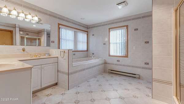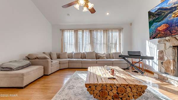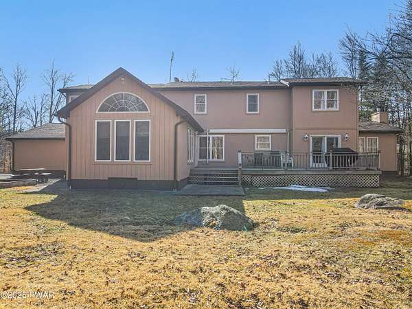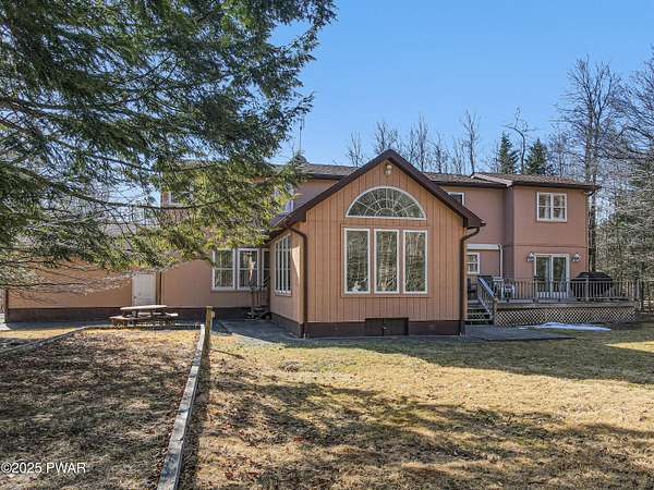 Nestled in the heart of the picturesque Pocono Mountains, this expansive 4,100 sq. ft. home in Lakeview Estates offers the perfect blend of space, charm, and opportunity. Boasting 4 bedrooms and 3 baths, this property is a dream come true for those who love to entertain or seek a tranquil retreat close to nature. Its prime location places you just a short stroll away from a stunning lake.Set on almost 2 acres of land, the home features outdoor delights like a 34' bocce court, ideal for gatherings and relaxation. The oversized 1,200 sq. ft. 6-car garage and workshop offer incredible functionality for hobbyists and car enthusiasts alike.Inside, the house exudes potential with its spacious layout. Highlights include a living room with soaring vaulted ceilings and a striking floor-to-ceiling stone fireplace, as well as a grand family room with 12' ceilings and its own cozy fireplace. A dedicated office/den adds versatility, while the master suite provides a private sanctuary complete with a luxurious soaking tub.Though the home requires some updating, it's priced accordingly and is being sold 'as is,' making it an exceptional opportunity to customize and create your perfect haven in this charming mountain town. A little love and vision could truly make this gem sparkle!