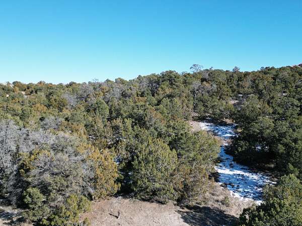 This gorgeous 2.8 acre lot offers expansive views, mature trees and direct access to the nature trail via easement. Located in the highly desirable Las Leyendas subdivision with wide, paved roads, utilities at the lot line including a paid Entranosa water membership. This property is primed for your custom-built home. Hiking and dog walking trails abound, perfect for outdoor enthusiasts. A wonderful location with custom homes, a minimum of 2,000 sq. ft. Whether you're seeking a peaceful retreat or a private sanctuary, this subdivision offers the perfect combination of nature, convenience, and value. Don't miss this rare opportunity to build your dream home! Only minutes from I40. Lot only accessible from Bolivar.