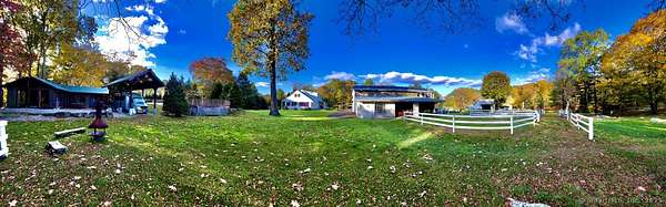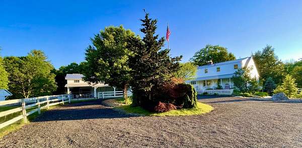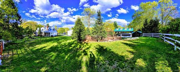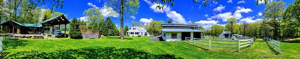 10.22 acres charming equine farm located right on Newtown bridle lane trail system. House, barn, art studio, running brook, pond, private and secluded with many farm assets included. 1956 very well built 2600 sq.ft cape style home, with 10 rooms, 2 bathrooms, 2 car garage, basement with a bomb shelter. Large 50x50 barn with 5 matted stalls, concrete barn isle, large roof overhang for additional shelter, tack room with sink and many frost free hydrants. Barn loft for hay storage, loft hangout room with pastures overlook, 3 additional walk in stalls, feed room, 6 frost free hydrants. 3 fenced in outdoor paddocks and 2 large fenced pastures. Direct access from property to NBLA horse trail system! Beautiful art studio shack. Large outdoor deck with aluminum gazebo, RV carport pavilion, fenced vegetable garden, pond and a running brook for farm irrigation.