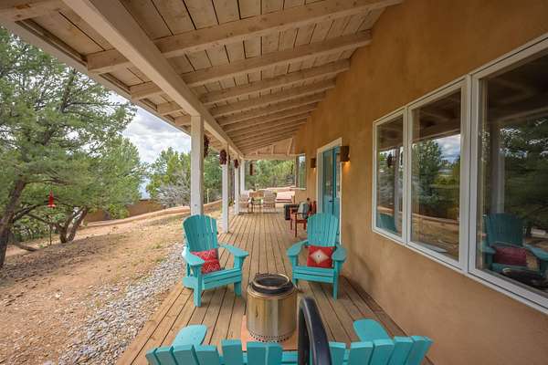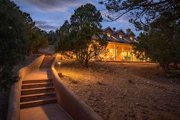 From the Old Blinking Light (intersection of US-64 and NM-150), head north on NM-150 for 2.7 miles and then turn left onto NM-230 N. Follow that for 2.5 and turn right to stay on NM-230 N. Stay on this for .9 miles and turn left onto Gallina Canyon Rd, and then turn right to stay on Gallina Canyon Rd which will then turn slightly left and becomes Gallina Rd. Stay straight on Gallina Rd for .6 miles and continue straight onto Deer Mesa Rd. The home will be on your left.