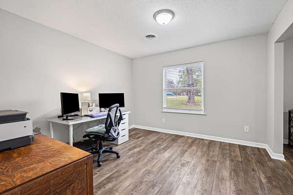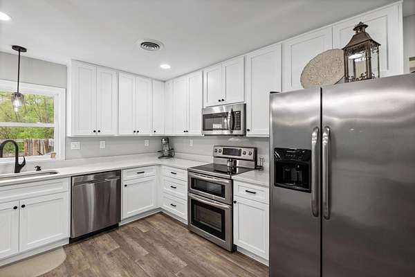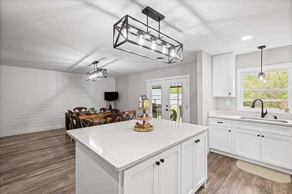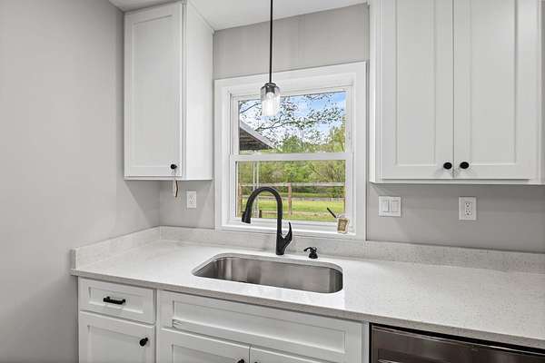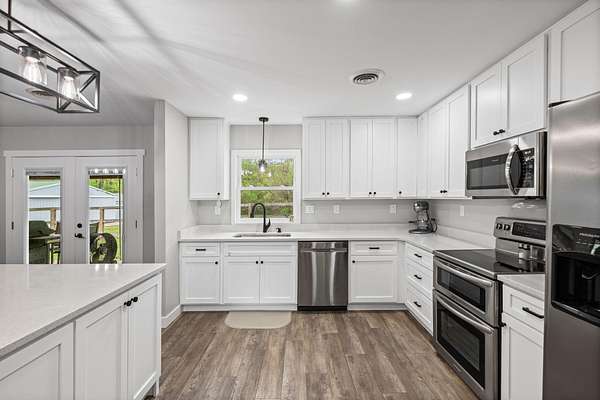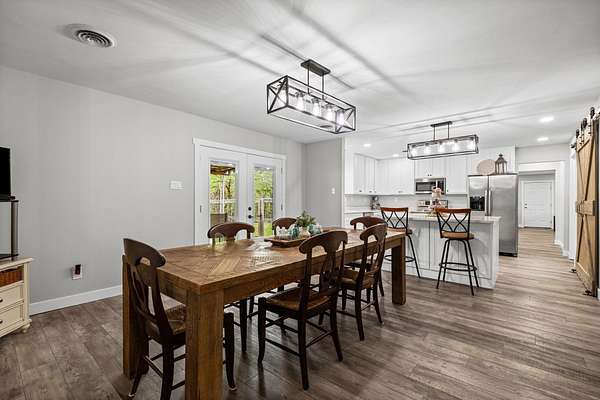 Nestled on nearly 4 acres, this beautifully updated property offers the perfect blend of privacy, functionality, and modern upgrades—complete with a professionally maintained, fully stocked pond. Inside, you’ll find new premium LVP flooring throughout, smooth ceilings with popcorn removed, and updated electrical and plumbing for peace of mind. The stunning kitchen features custom cabinetry, quartz countertops, and a fresh, modern design ideal for everyday living and entertaining. The primary suite has been enhanced with a brand-new shower and toilet, while new French doors open to a relaxing back patio space. Outside, a spacious 30’ x 40’ workshop with dedicated office space and a mini-split system for heating and cooling provides endless possibilities for work or hobbies. Seller is open to subdividing approximately 1 acre and selling it separately from the 3.8 acres, offering added flexibility. This thoughtfully upgraded home is truly move-in ready and waiting for its next owner!