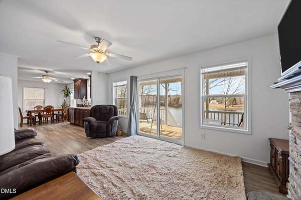 Wake up to stunning lake views and enjoy over 300 feet of lake frontage at this beautiful, like-new lake home designed for both relaxation and entertaining. With its private floating dock and expansive water views, this property offers the perfect setting for unwinding by the water. Inside, the home features LVP flooring throughout for durability and easy maintenance, while the spacious living room is anchored by a cozy wood-burning fireplace, creating a warm and inviting atmosphere. Large windows and the covered back porch with spectacular lake views make it easy to enjoy the scenery from nearly every angle. The primary en-suite offers a peaceful retreat with double sinks and a beautifully tiled walk-in shower. The kitchen and living areas flow seamlessly for comfortable everyday living or hosting guests. For added convenience, the washer, dryer, and refrigerator remain with the home, making it truly move-in ready. Even while enjoying lakeside living, you'll stay connected with reliable Spectrum internet that works great. Downstairs, the home offers an impressive 1,200 square feet of unfinished walk-out basement space already plumbed for a bathroom, providing endless possibilities for expansion--create a guest suite, recreation room, home gym, or additional living space tailored to your needs. Whether you're looking for a full-time residence, weekend getaway, or investment opportunity, this exceptional lake property combines breathtaking views, privacy, and future potential in one remarkable package.