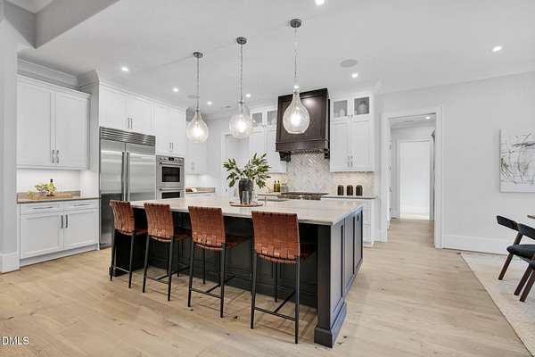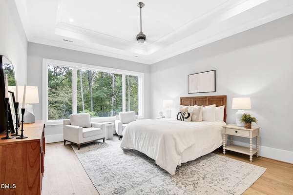 Experience refined country living in this stunning new build, perfectly situated on over five private acres in one of Pittsboro's most desirable locations. Designed by award-winning Bost Custom Homes, this 4 bedroom, 6-bath residence seamlessly blends modern design with timeless elegance and high-end finishes throughout. Every part of this home has been thoughtfully designed to create the perfect blend of luxury and calming space. The main level features a serene primary suite and a secondary bedroom ideal for guests or multi-generational living. The chef's kitchen is a true centerpiece, complete with Wolf appliances and custom cabinetry, and a layout perfect for entertaining. Sunlit open living spaces flow effortlessly and include two spacious gathering areas plus a hidden room that adds character and surprise. The lower level expands the living possibilities with two additional bedrooms, a wine cellar, home gym, and versatile spaces perfect for a media room or private office. A pre-planned elevator shaft ensures effortless future accessibility. Outdoors, the pastoral setting provides sweeping views and plenty of room for a future pool, creating a private retreat just minutes from downtown Pittsboro, Chapel Hill, Chatham Park, and Perry Harrison Elementary. Picture yourself sipping tea on the expansive porch, surrounded by peace and tranquility. Whether you work from home or simply want to escape the hustle and bustle, this home offers the space and calming retreat you've been looking for. Don't miss this rare opportunity to own a thoughtfully crafted home that combines luxury, convenience, and tranquility in an unbeatable location. A perfect piece of paradise!