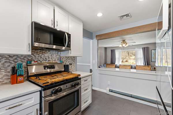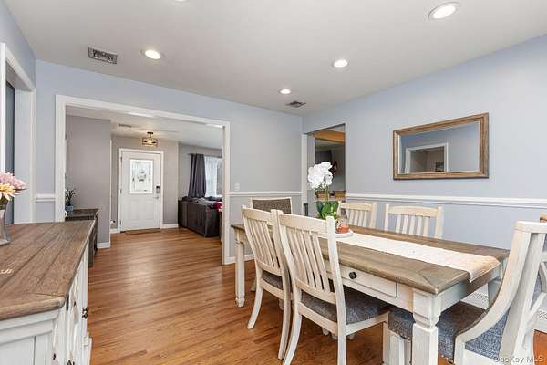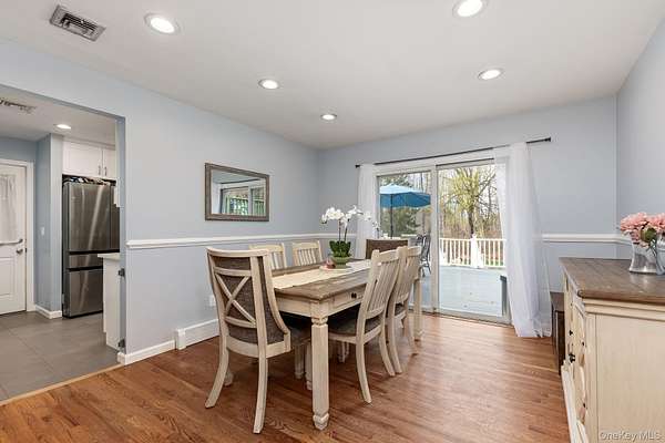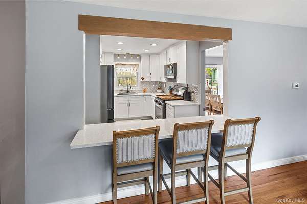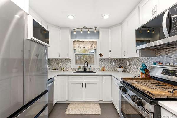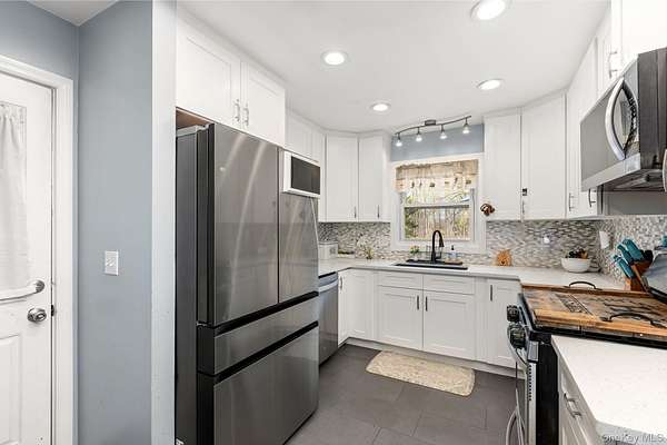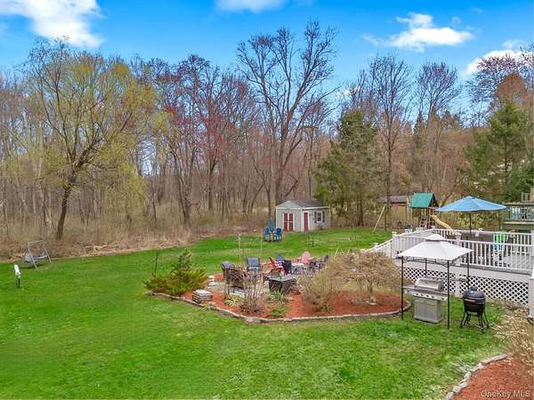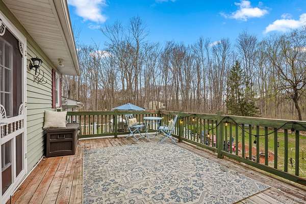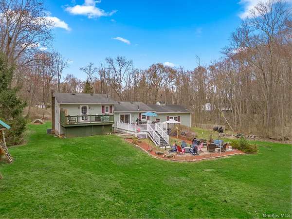 Tucked away at the end of a quiet cul-de-sac, this beautifully maintained home sits on 2.87 acres of mostly level, private property-offering the perfect blend of peaceful surroundings and everyday convenience. Step into a bright and welcoming main living area featuring a sun-filled living room with an oversized picture window framing peaceful views of the front lawn, and a dining room with sliding glass doors that open to a spacious Trex deck (2023) and tranquil backyard. The backyard is a completely private oasis where the only sounds are birdsong and the soft rustle of the trees-perfect for quiet mornings, firepit evenings, and effortless entertaining. The completely updated kitchen (2024) with stainless steel appliances flows seamlessly to the attached 2-car garage and backyard access. A few steps down, the expansive family room offers the perfect gathering space with laundry, generous storage, and easy walkout access to the yard. Warm, welcoming, and wonderfully friendly home is the perfect setting for everyday living, celebrations, and lasting memories. Upstairs, you'll find three comfortable bedrooms, including a primary suite with a private half bath and its own charming deck-ideal for morning coffee overlooking the peaceful property. A beautifully updated full bath completes the upper level. Recent upgrades include brand-new central air (July 2025), new luxury vinyl flooring, fresh paint, a new well pump (2022), and a full-house generator-ready hookup. The backyard also features a patio perfect for firepit nights, a propane hookup for grilling, serene landscaping, and a transferable invisible fence throughout the property. Located just minutes from the charming Village of Pawling, enjoy the rare combination of privacy and convenience with a quick walk into town for coffee, restaurants, shops, and community events, plus easy access to hiking trails, Metro-North, schools, and a fantastic commuter location.